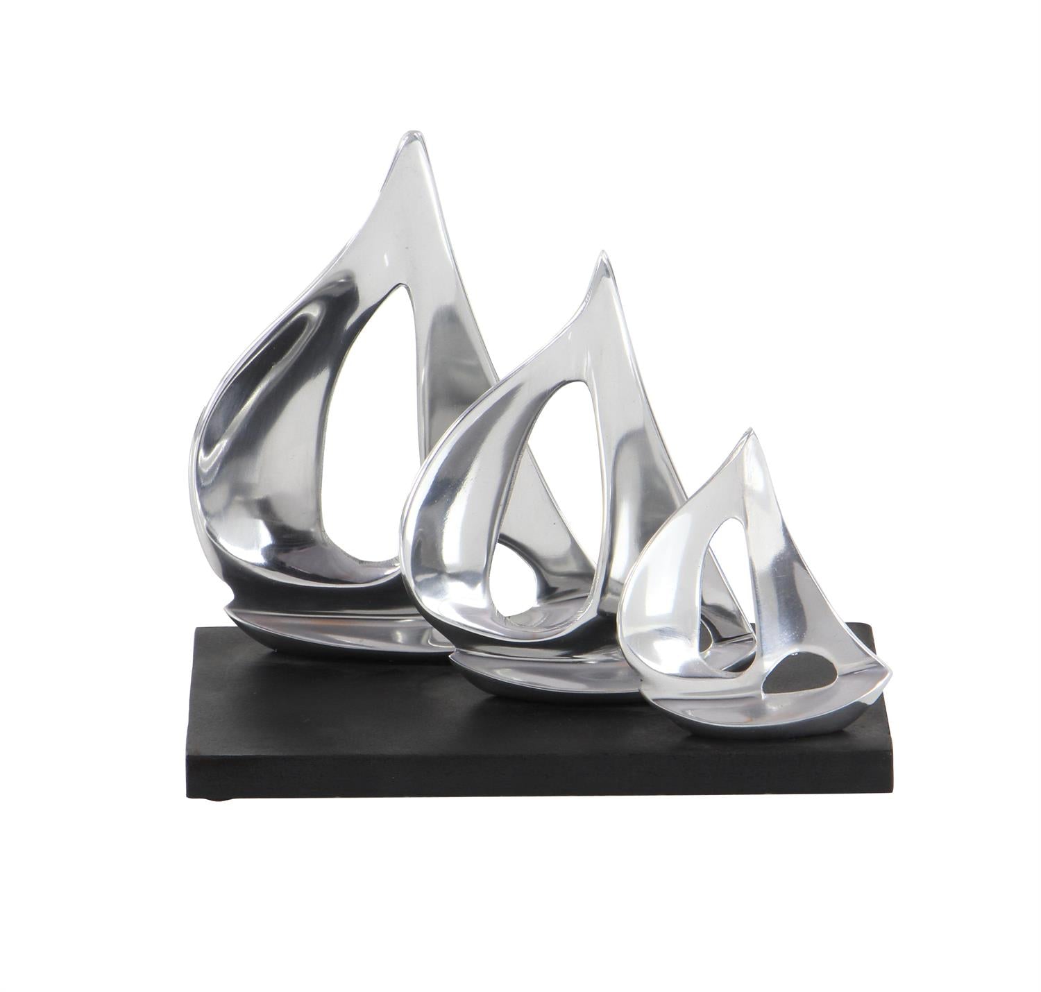 Silver Aluminum Metal Sailboat Decorative Sculpture with Black Base
