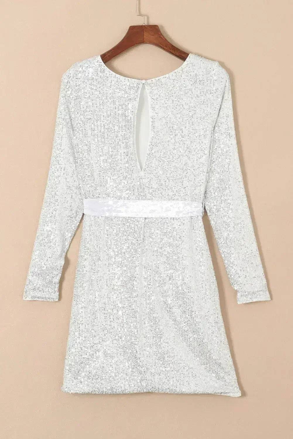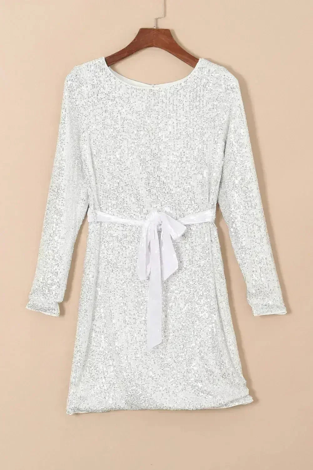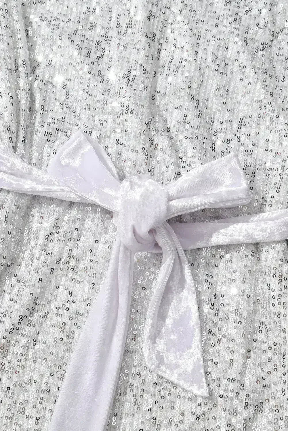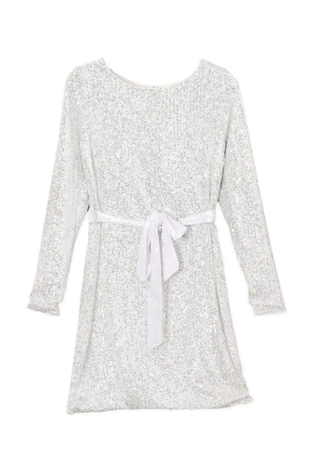 Silvery Sequin Long Sleeve Tie Waist Mini Dress