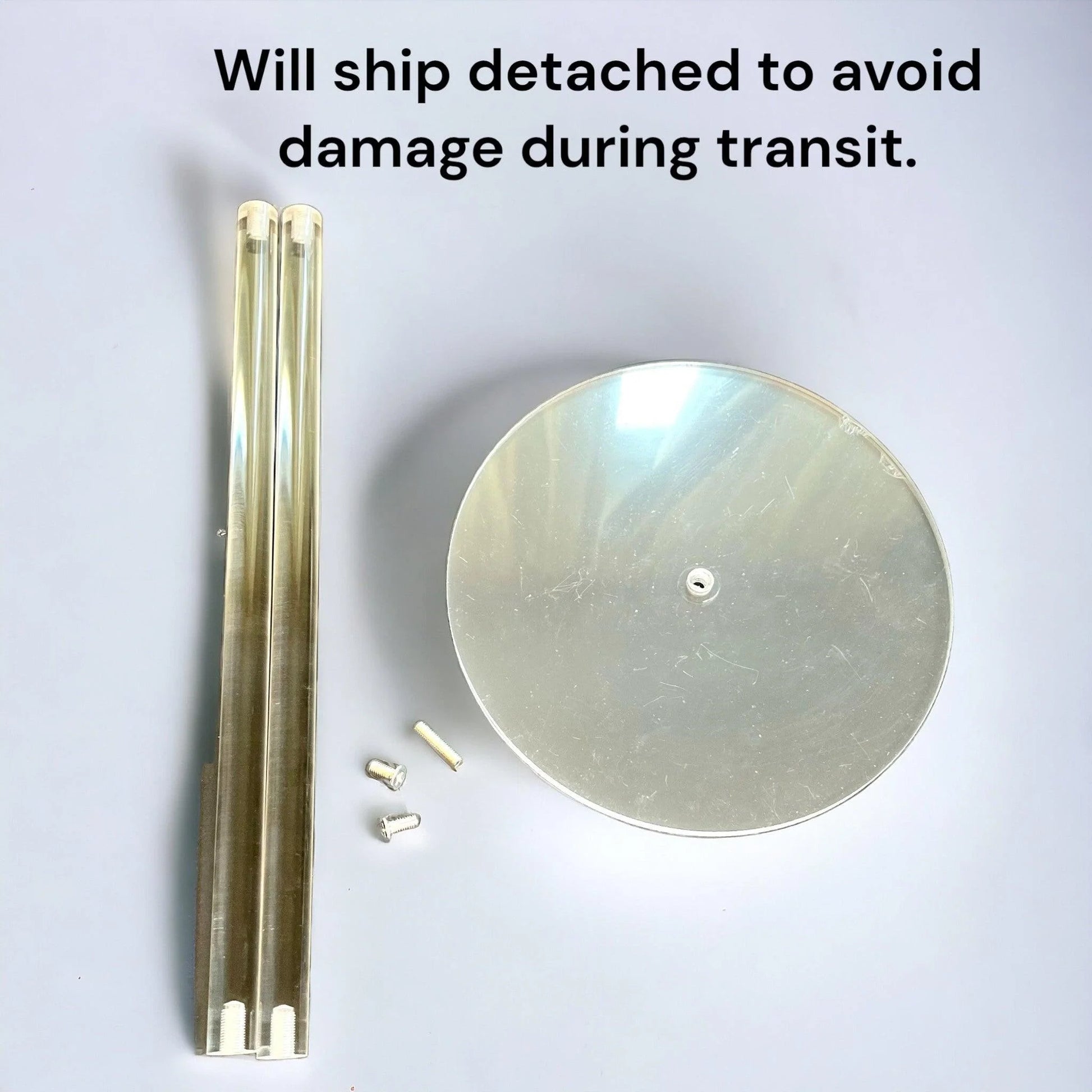 - The centerpiece stand, crafted from premium acrylic, features a sleek, minimalistic design standing 31 inches tall with a sturdy 9-inch base, ensuring stability and elegance.