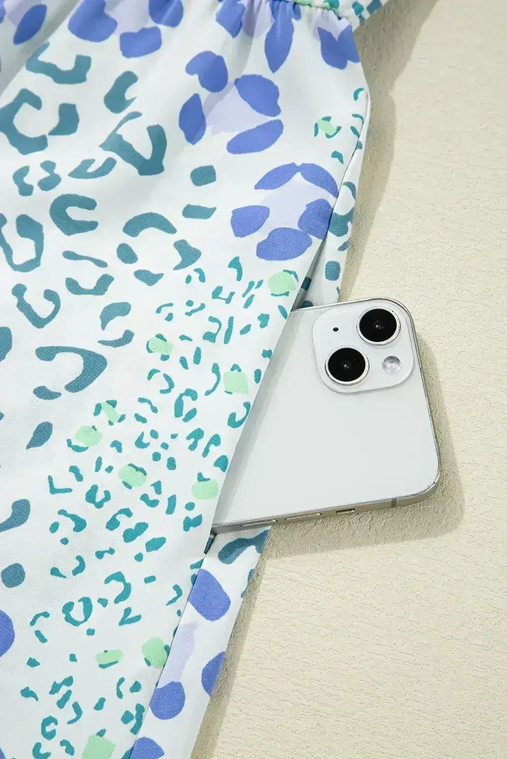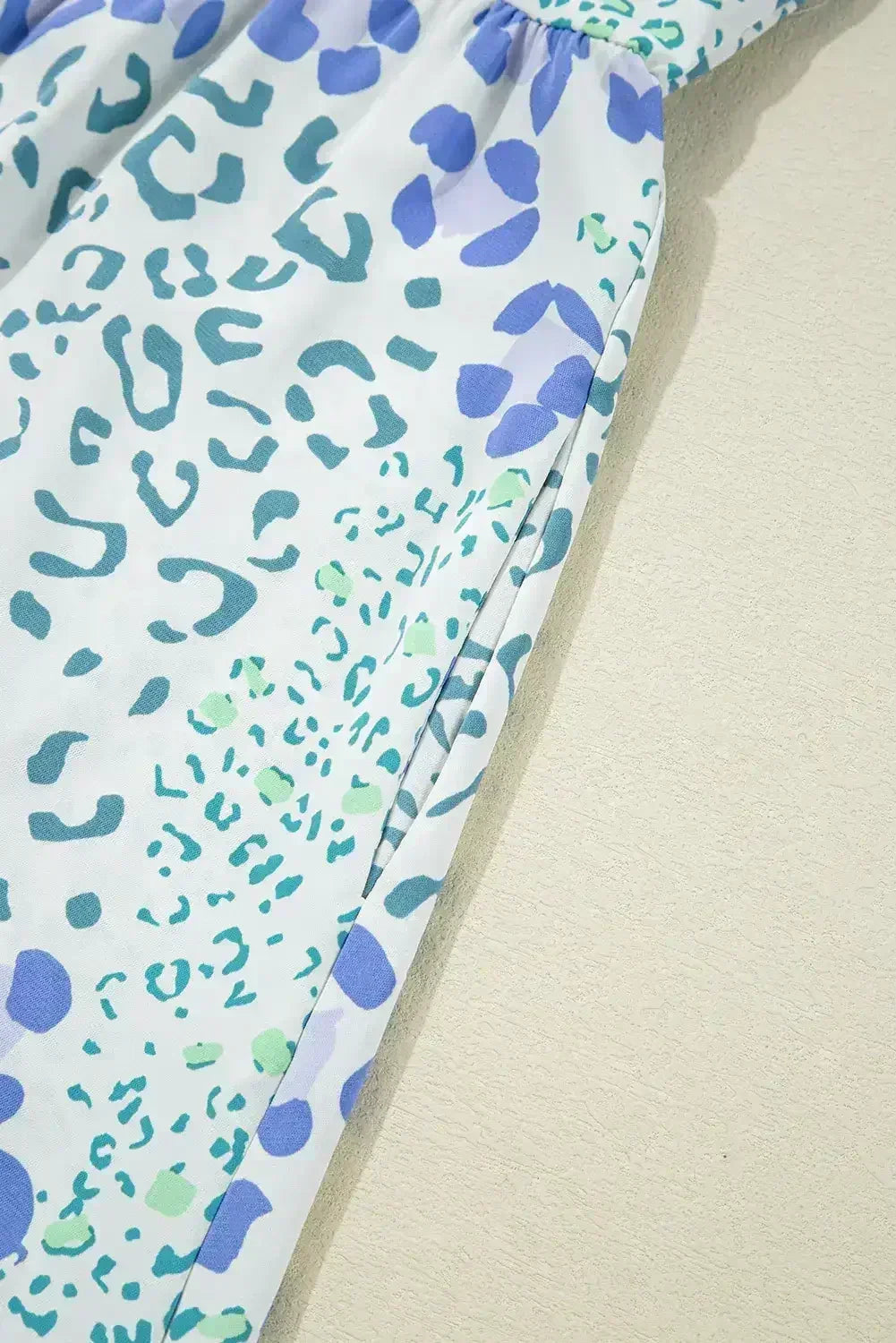 Sky Blue Leopard Bow Front Puff Sleeve Mini Dress