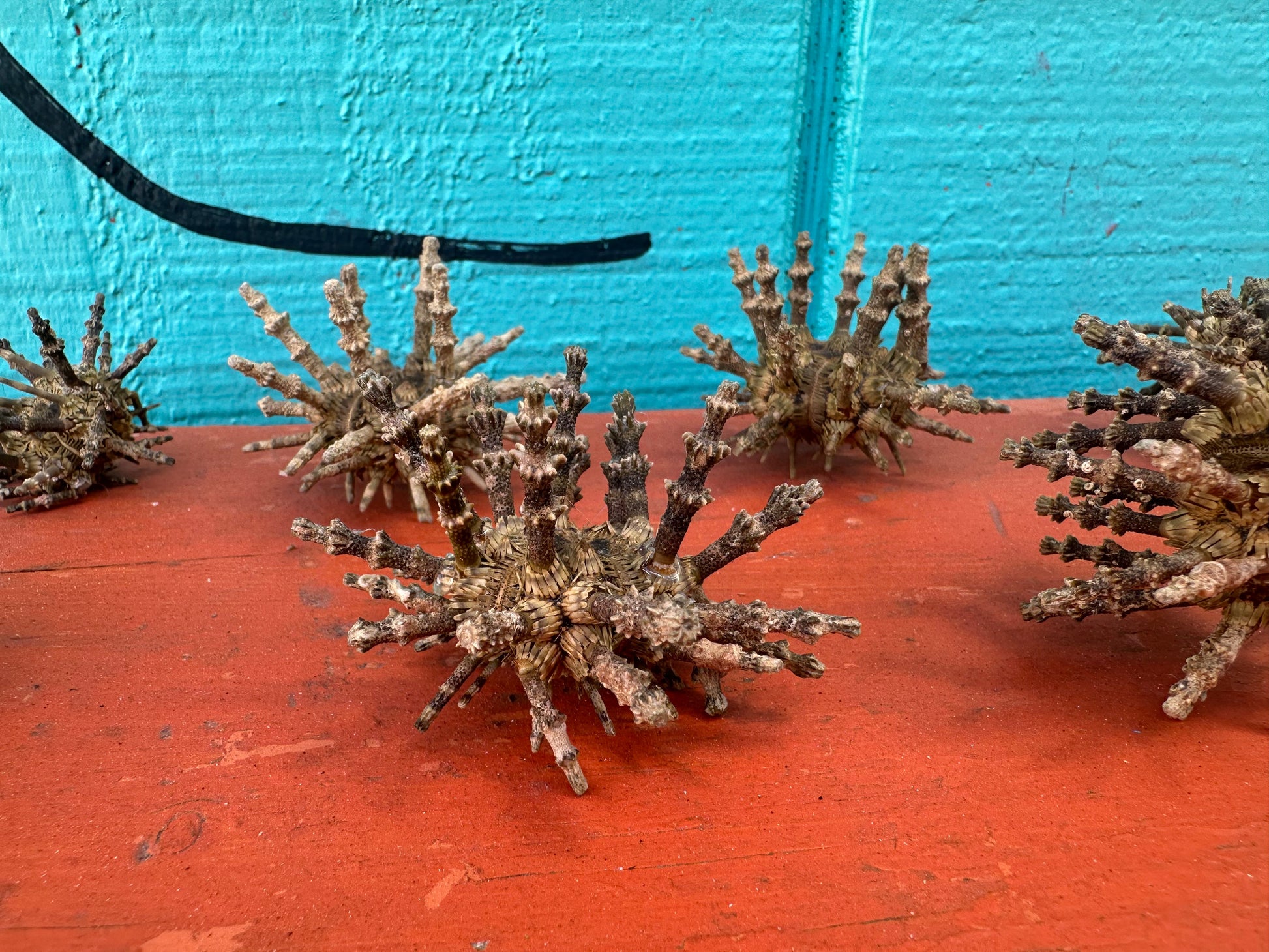 These small green Sputnik urchins are a quirky and rare find—ideal for creative coastal projects and marine-inspired crafts. Their spiny, sculptural shape gives them a standout presence, even in the smallest size. A few have been gently repaired with visible glue to preserve their unique character, making them a great addition to DIY displays or mixed shell arrangements.