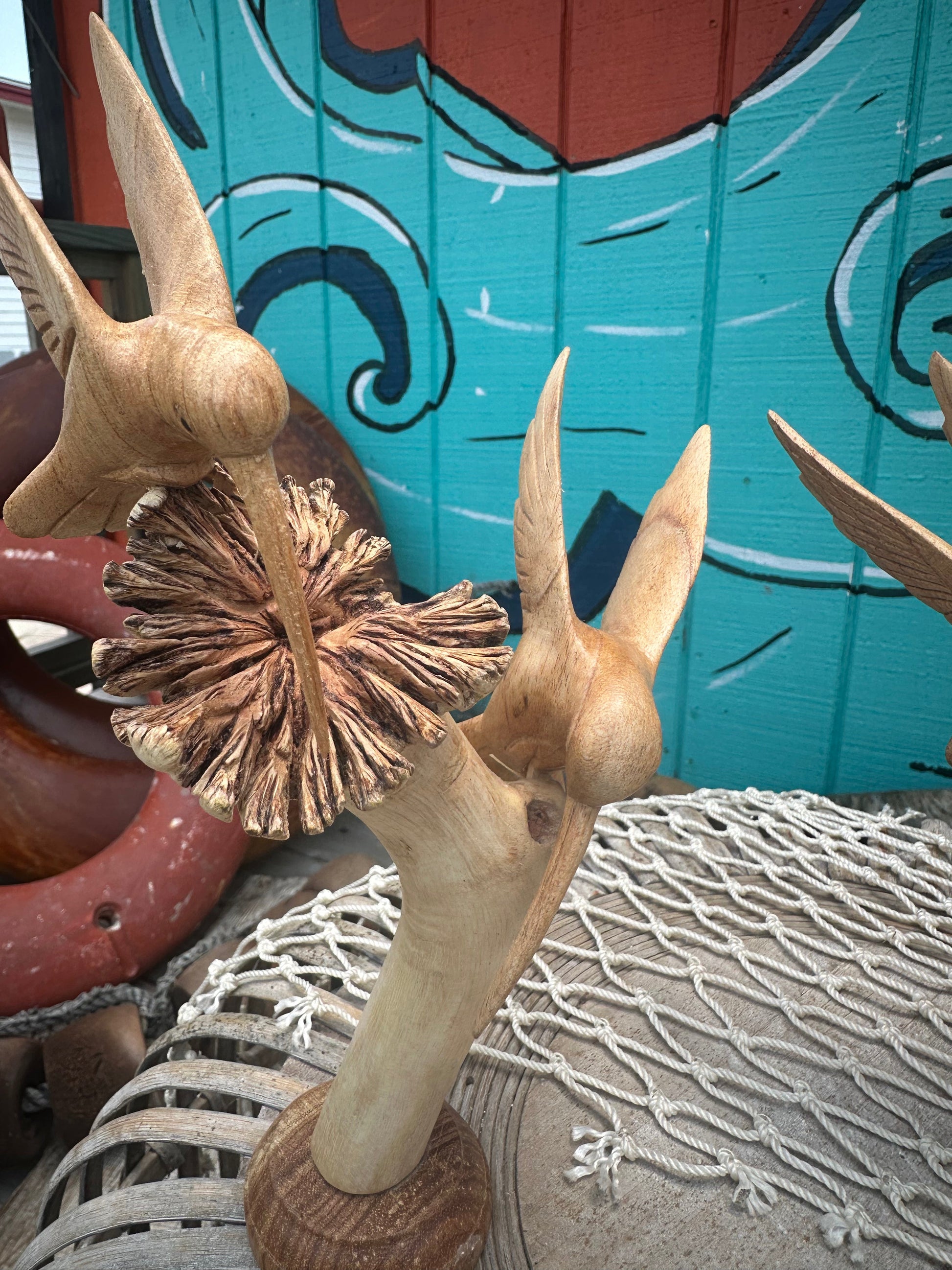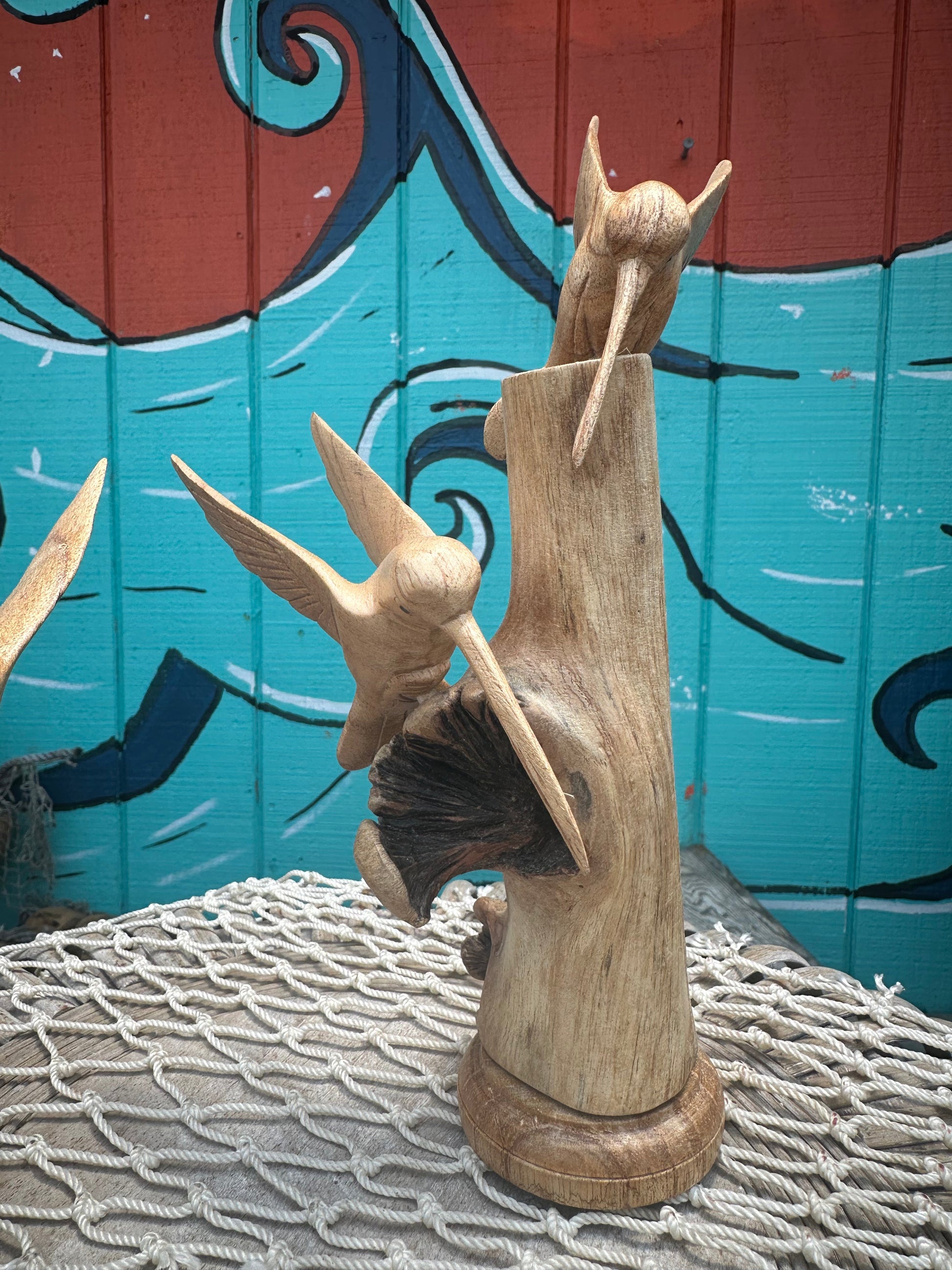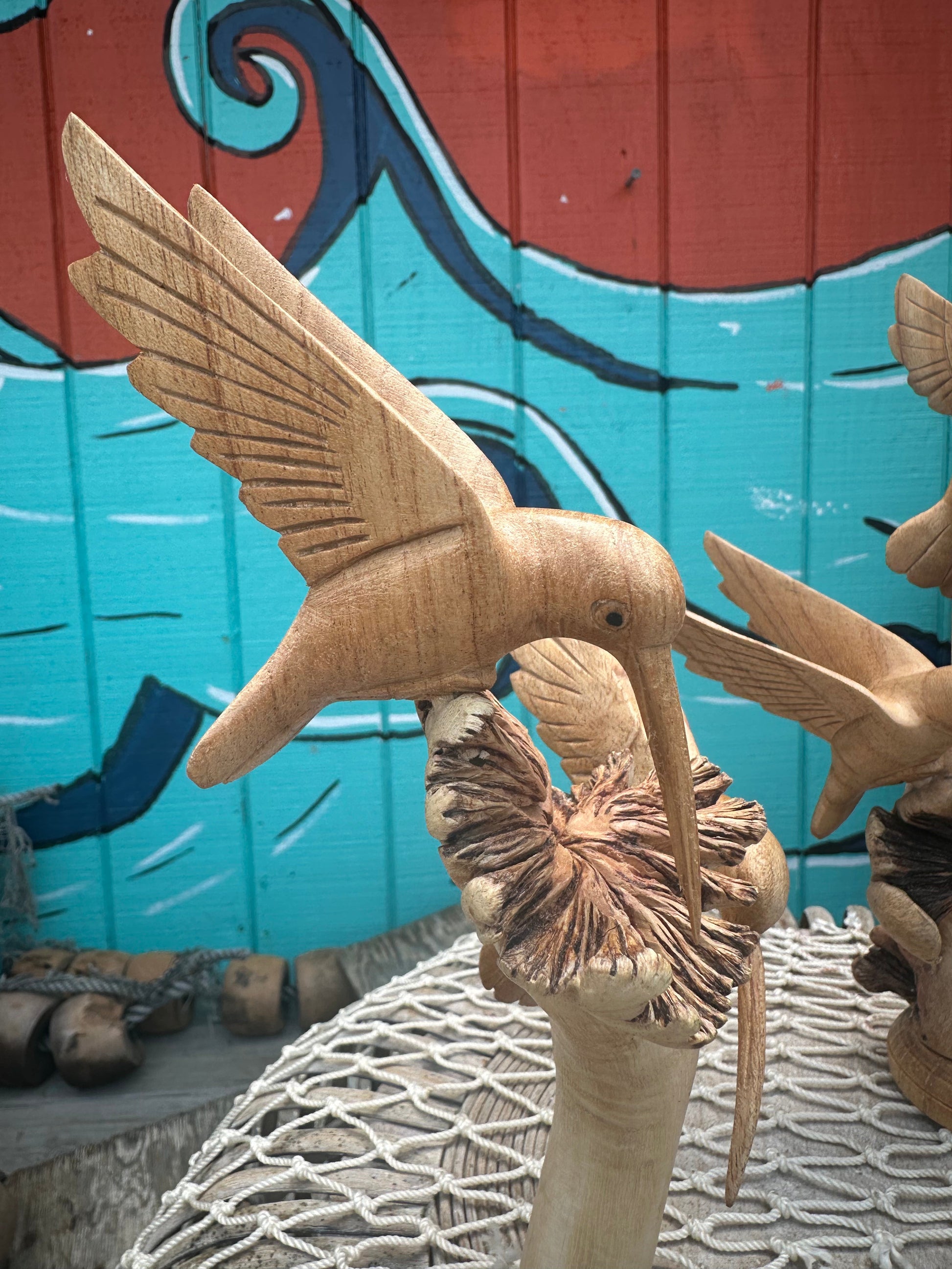 Elevate your home decor with this beautiful Small Hummingbird Wood Sculpture. Made from unique driftwood, this bird sculpture is a birding enthusiast's dream. It also makes a stunning and unique gift for any occasion. Perfect for adding a touch of charm to your kitchen or living space.