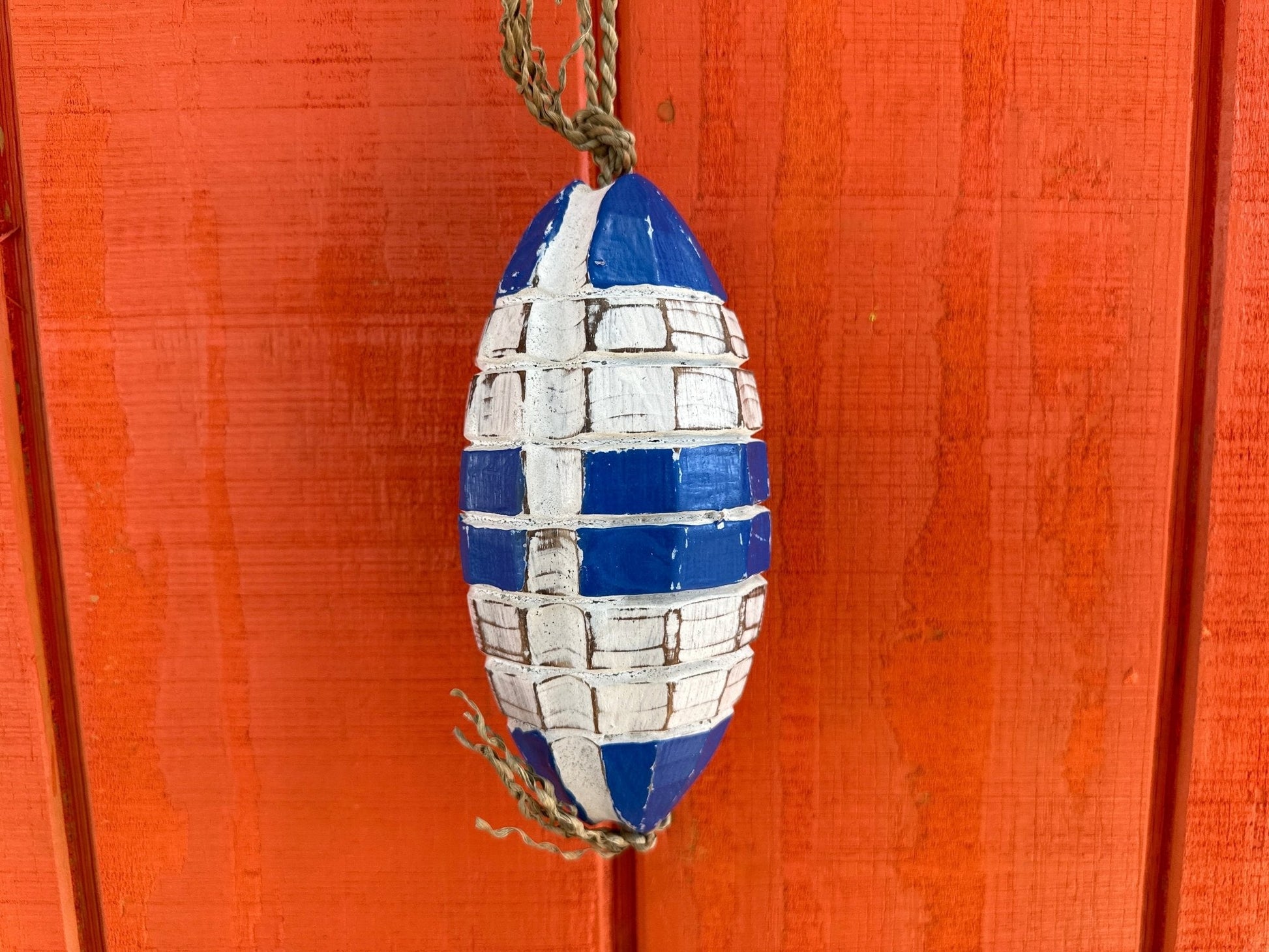 Add a charming coastal accent to your home with our Small Oval Wooden Buoy. Available in 2 colors, this unique buoy adds a nautical touch to any room. Perfect for beach lovers and coastal decor enthusiasts.