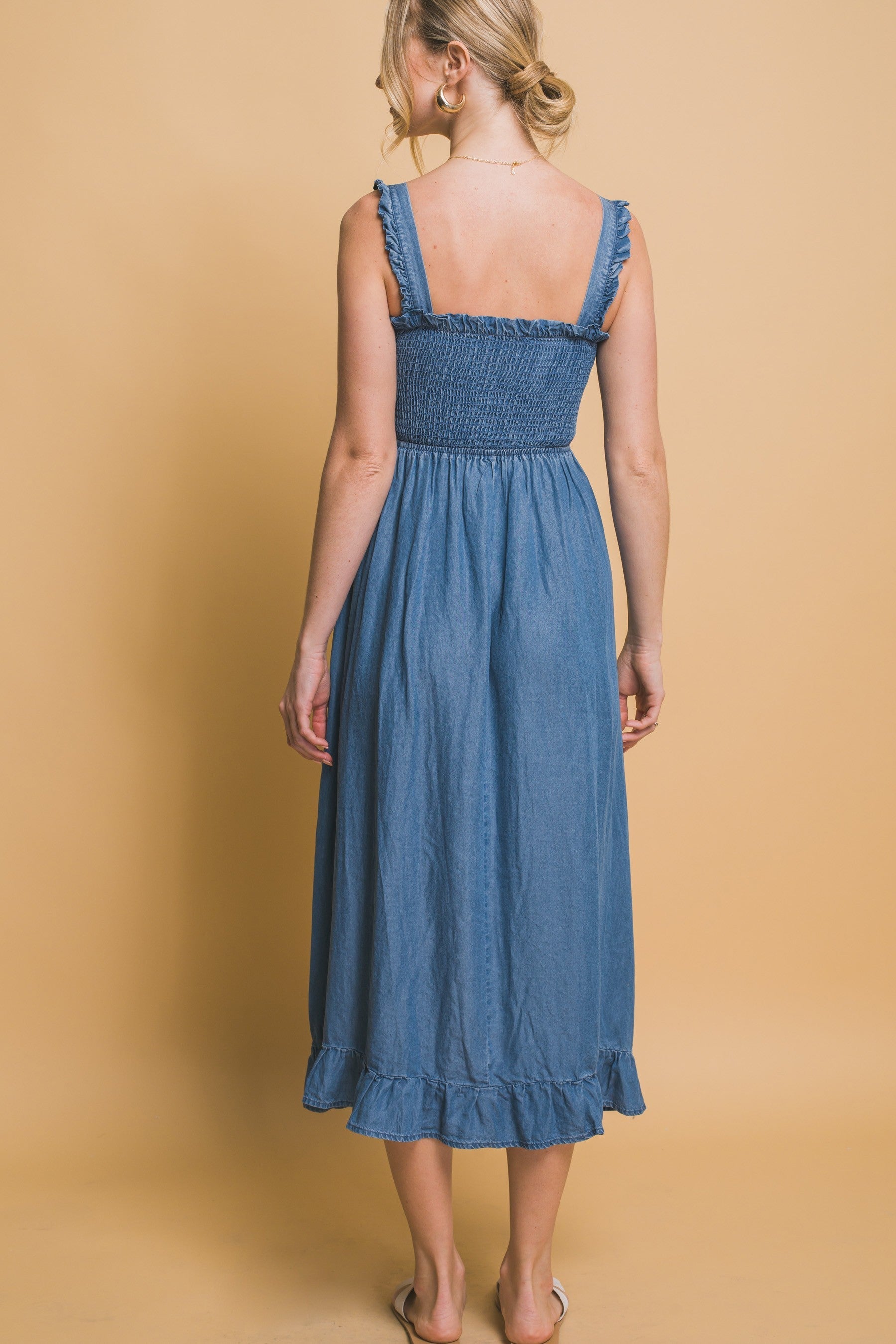 The Smocked Maxi Dress is a beautifully feminine piece featuring a flattering smocked bodice and a flowing, full-length skirt. Designed for comfort and elegance, it offers a stretchy, form-fitting top with a relaxed, breezy silhouette below. Perfect for everything from casual outings to special occasions, this dress combines effortless style with timeless charm.