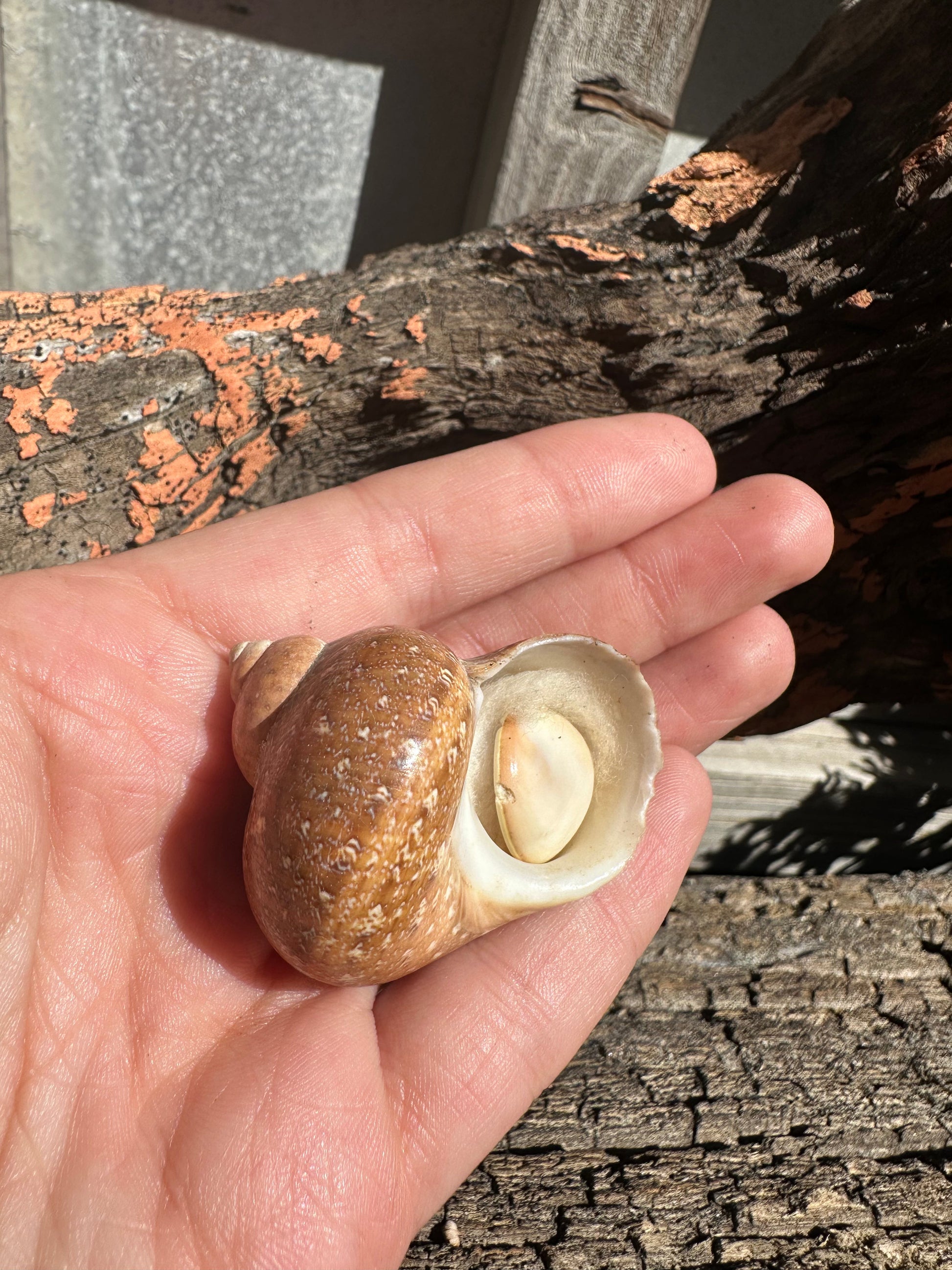 This Snake Skin Turbo Shell with its operculum is a beautiful and rare find, perfect for adding natural elegance to any collection or décor. Its unique pattern and natural luster make it a cherished piece for beach lovers and collectors alike.