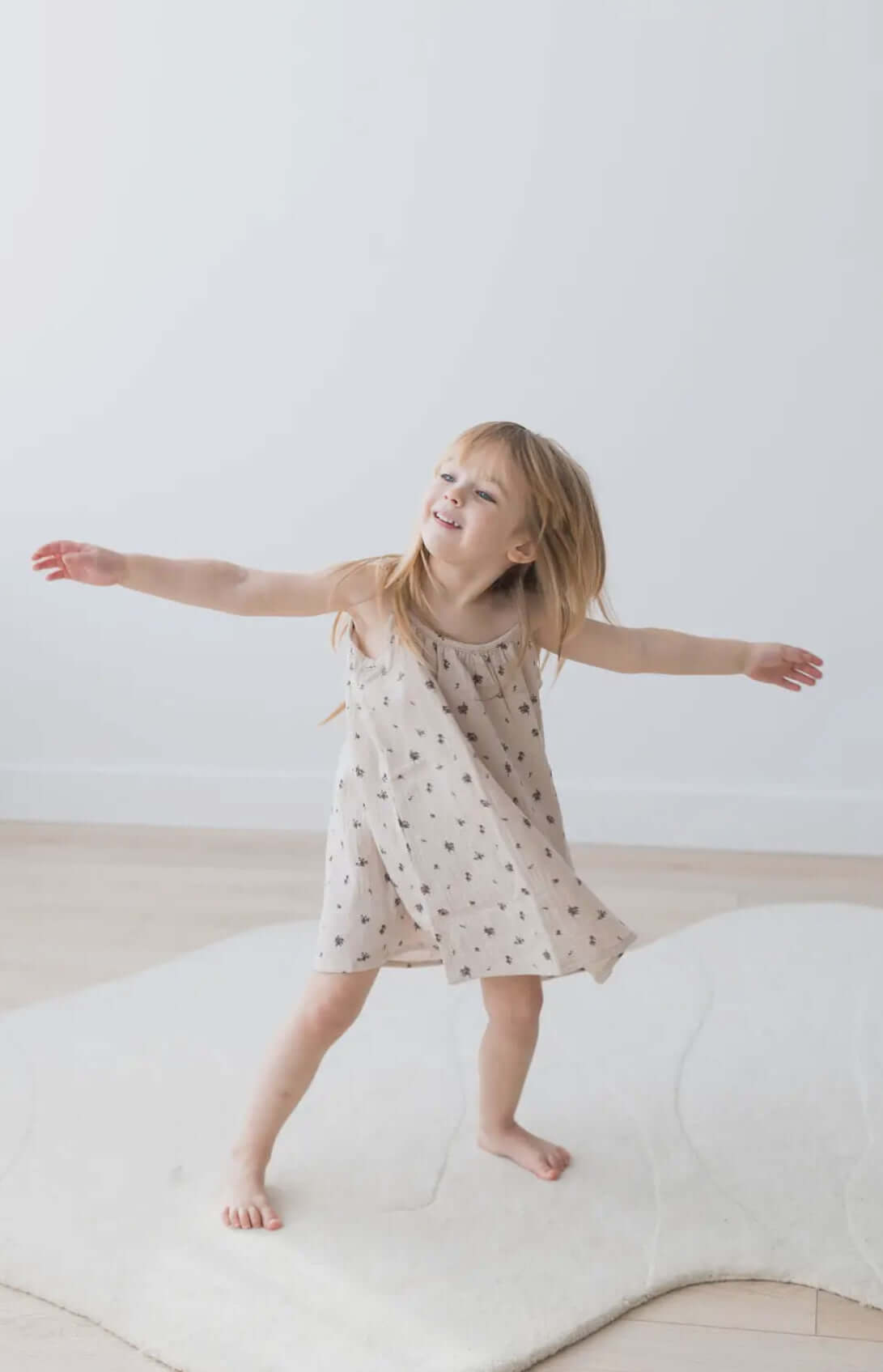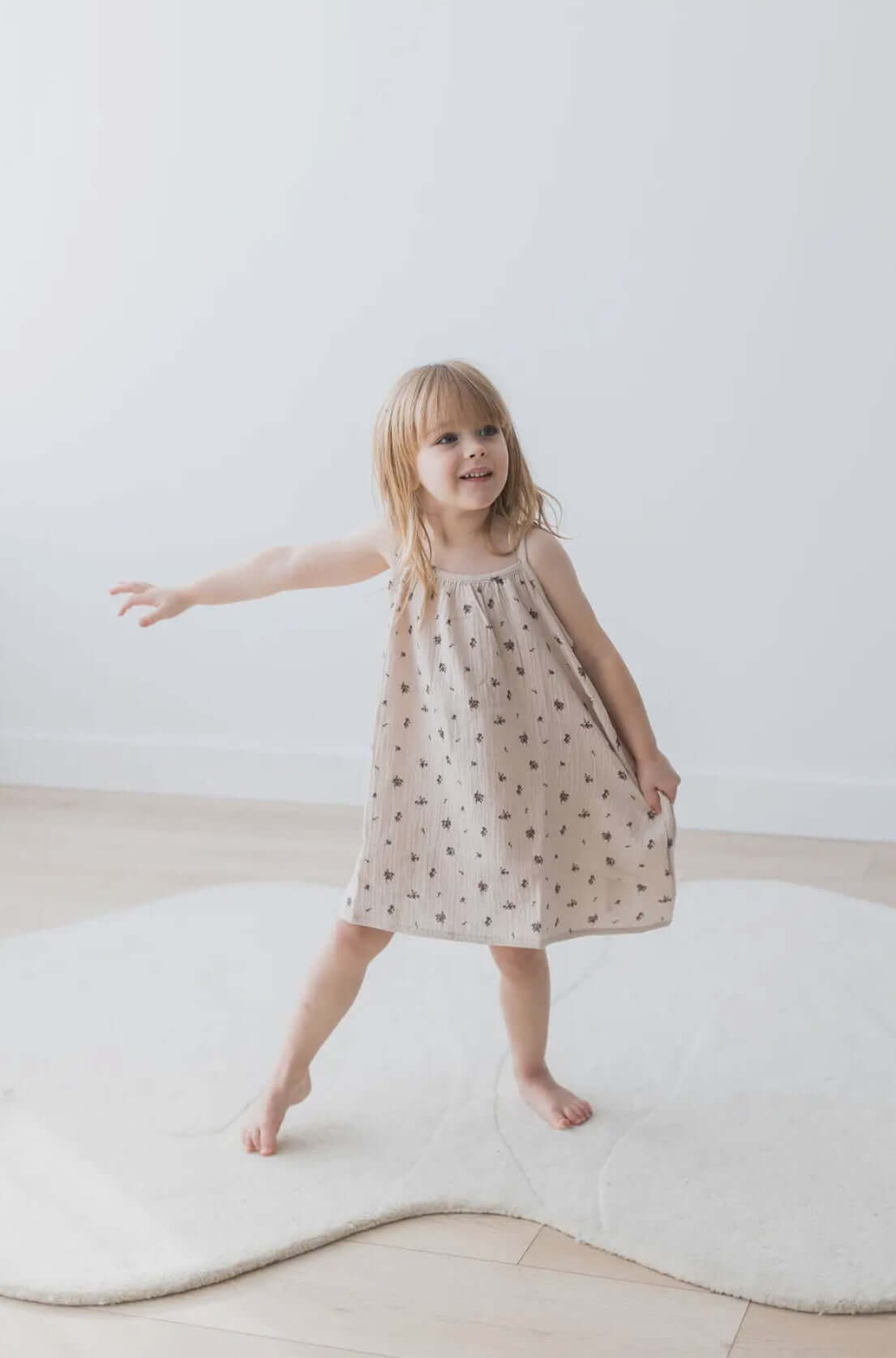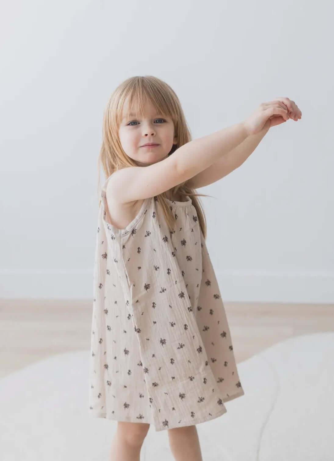 This is the perfect dress for little girl’s capsule warbdrobe. It runs a little large, so I recommend buying current size, and with the adjustable straps the dress will last longer. It can be layered with a jacket, sweater, leggings, dress shoes or boots for colder weather. It is perfect alone for the summer months just add shoes. A must have for every little princess!
