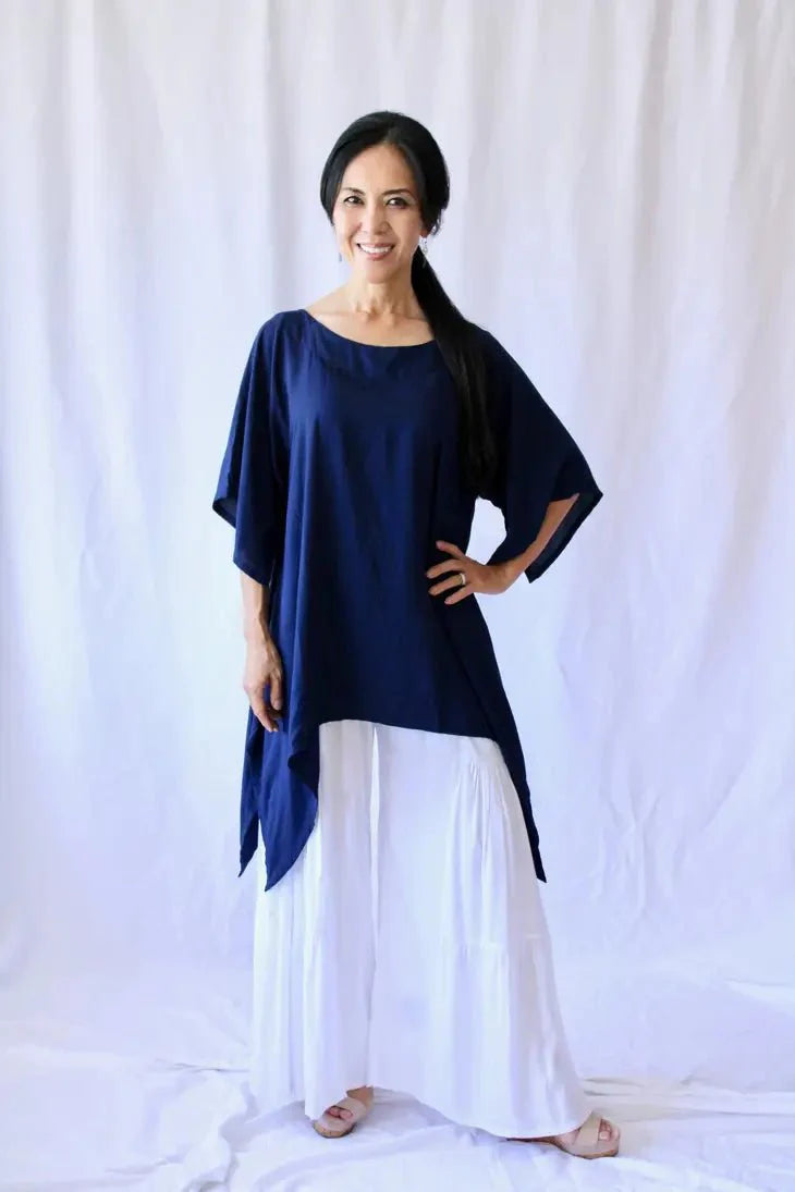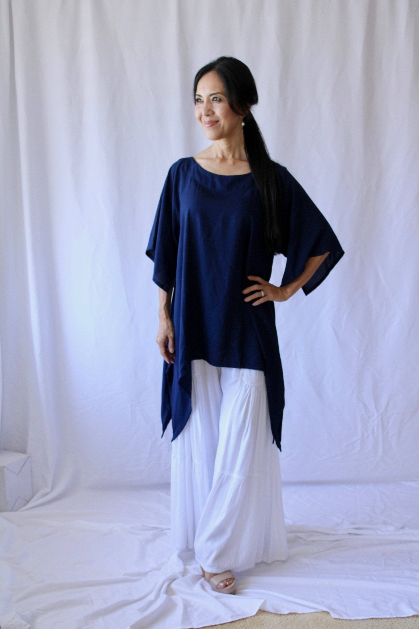 This multi-purpose garment can be used as a dress, blouse, or overgarment. It has a scoop neck and loose ties on the sides which can be bound or let loose. Match with shorts, high heels, or palazzo trousers for 3 distinct looks.