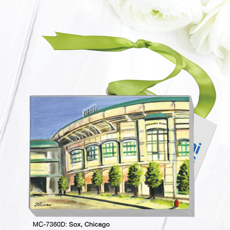 Sox, Chicago, Mini Canvas (MC-7360D) is made in the USA from oil paintings by artist, Danilo Cuevas. Miniaturized images mounted on a mini canvas. Each arrive with a ribbon strand for easy hanging and display.