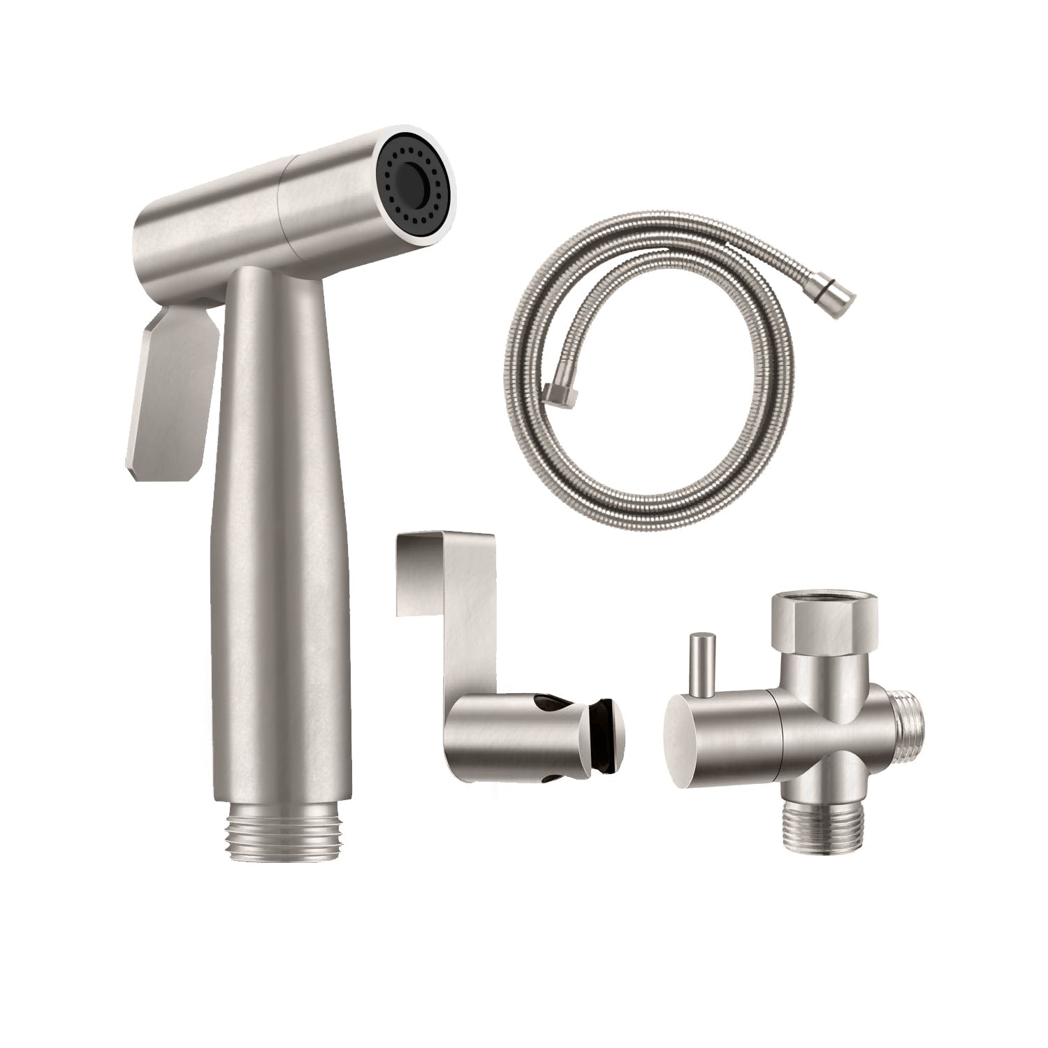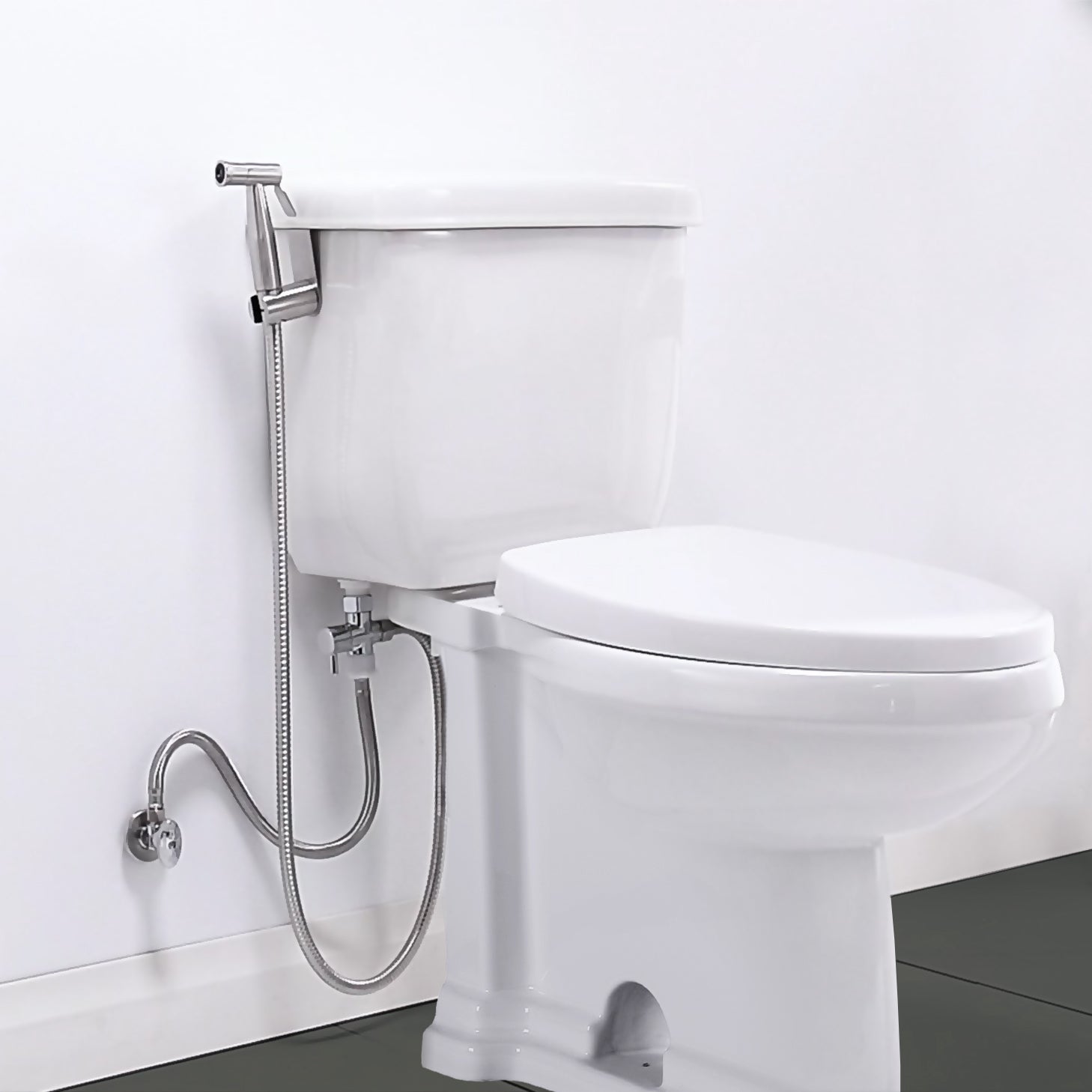 Spahaus Stainless Steel Hand-Held Bidet Sprayer Set is the perfect accessory for any bathroom. The universal T-valve with shut off lever handle works with any standard toilet in the USA. The set includes a 304 stainless steel bidet hose as well as a holder for either a toilet tank or wall mount installation. Spahaus multifunctional Bidet Sprayer is ideal for personal hygiene, toilet maintenance, pet cleaning and many other daily needs
