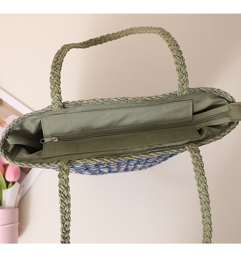Special Interest Design Contrast Color One Shoulder Straw Bag Simple Twill Woven Tote Women Seaside Vacation Beach Bag