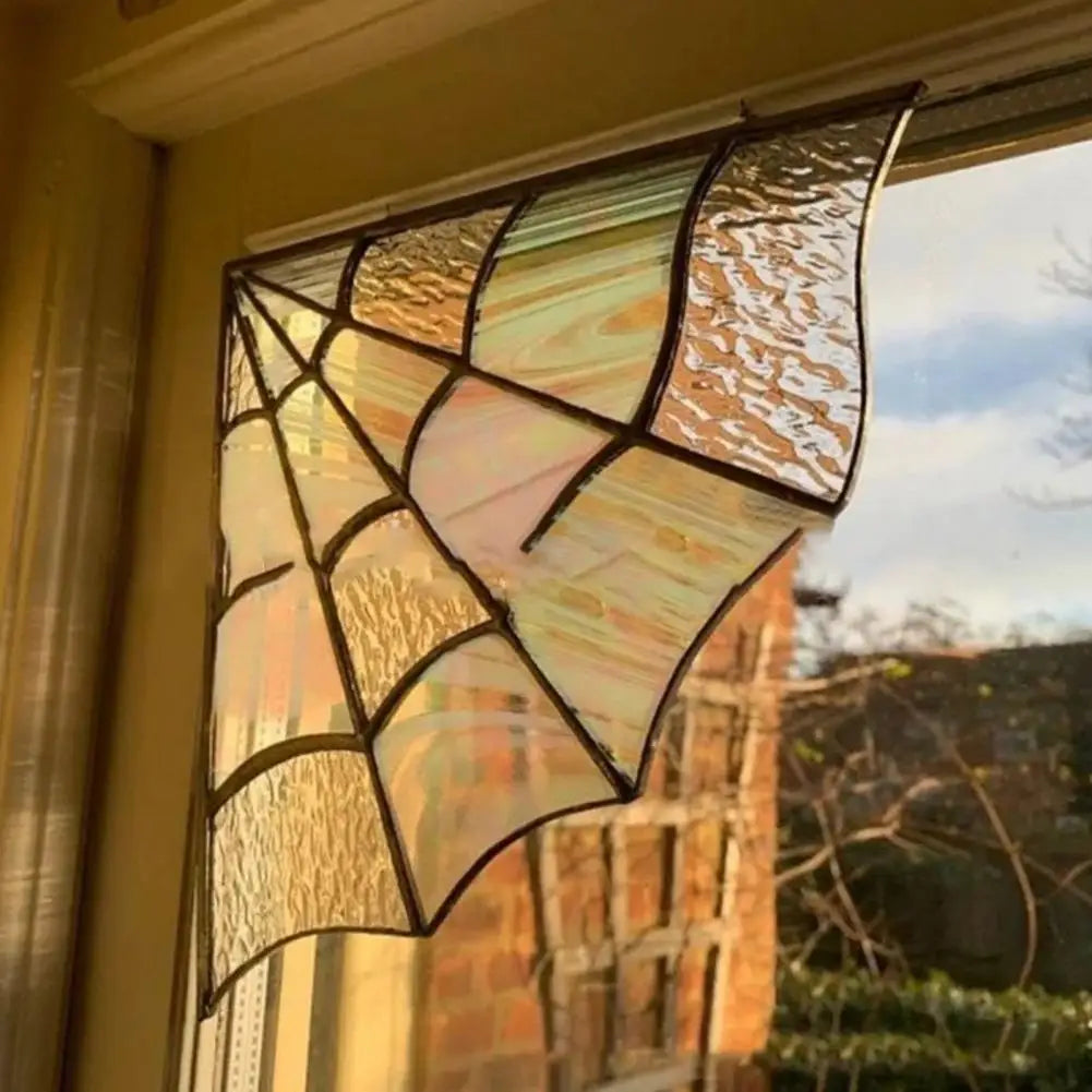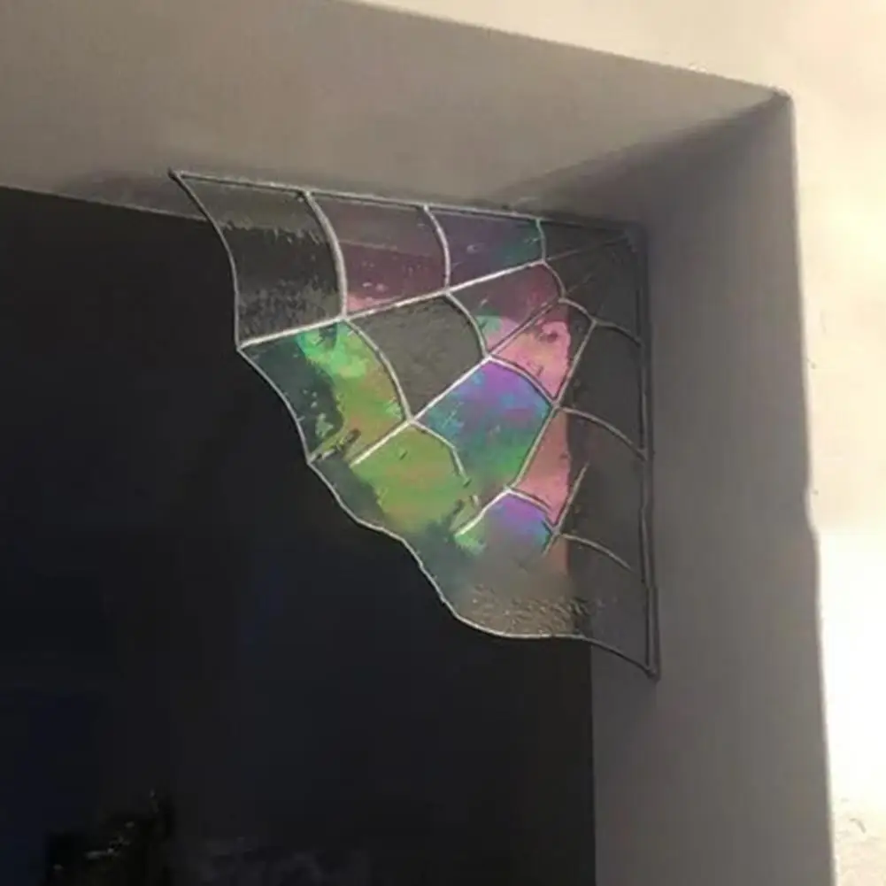 Spider Web Window Corner Decoration Home Living Room Indoor Stained Glass Acrylic Web Window Hanging Ornament Christmas Gift