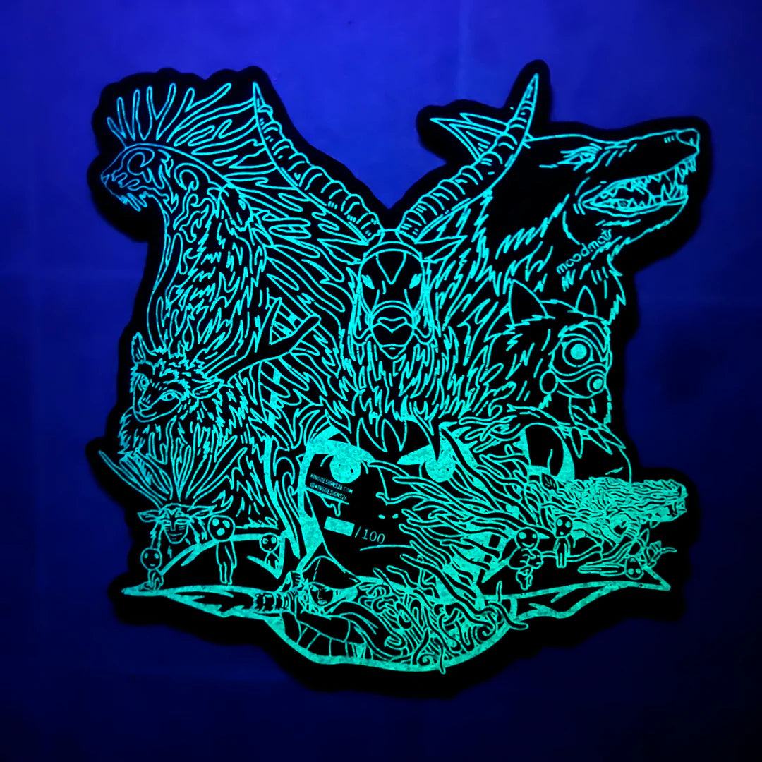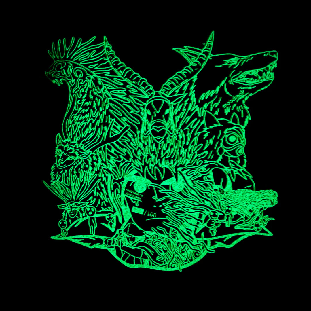 With only 100 signed pieces available, the Spiritual Connections moodmat is a limited edition collectible that celebrates the invisible bonds that connect us all. The unique blue-to-green glow effect on the back creates a mesmerizing visual experience in darkness, symbolizing the ever-changing nature of spiritual energy. The artist signature authenticates each piece, making it a valuable addition to any collection focused on spiritual themes, meaningful art, or unique collectibles.