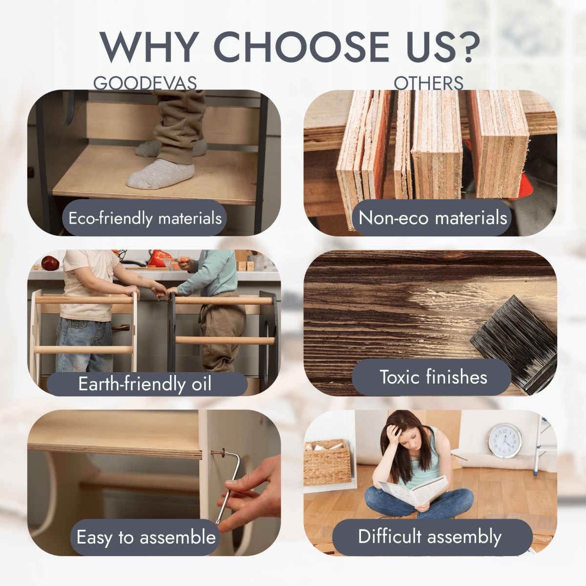 - Eco-Friendly Materials: Made from natural wood and finished with non-toxic paints, this learning tower is completely safe for your child and an environmentally responsible choice.