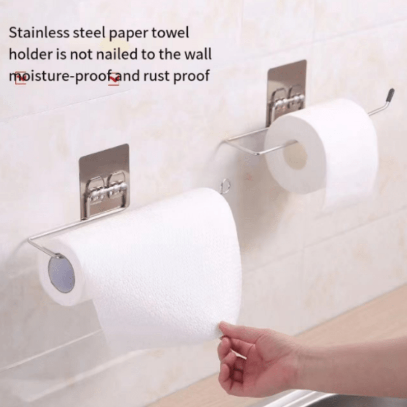 The Stainless Steel Wall-Mounted Paper Towel Holder is a sleek and durable solution for storing paper towels in both your kitchen and bathroom. Crafted from high-quality stainless steel, this wall-mounted holder is designed to be sturdy, rust-resistant, and easy to clean. It keeps your paper towels organized and within reach while saving valuable countertop or drawer space. The simple, modern design fits seamlessly into any home decor, making it perfect for kitchens, bathrooms, or any space where paper towels are frequently used.