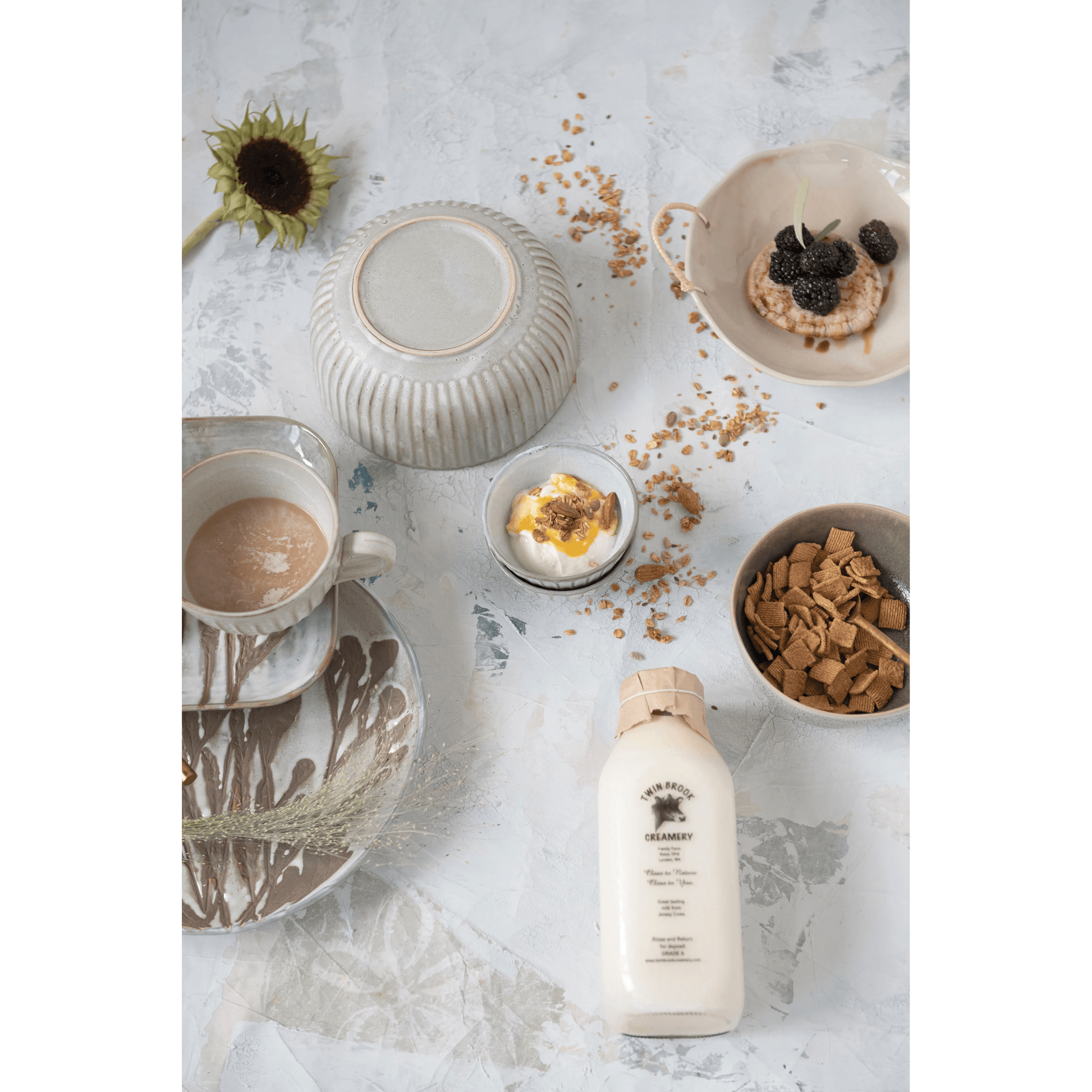 Add some texture to your dining and serving experience with our Stoneware Pleated Bowl. Each piece boasts a unique cream glaze finish, making it a one-of-a-kind addition to your table. The reactive glaze adds an interesting element to this versatile and functional bowl.