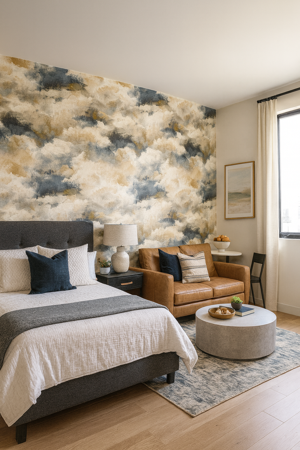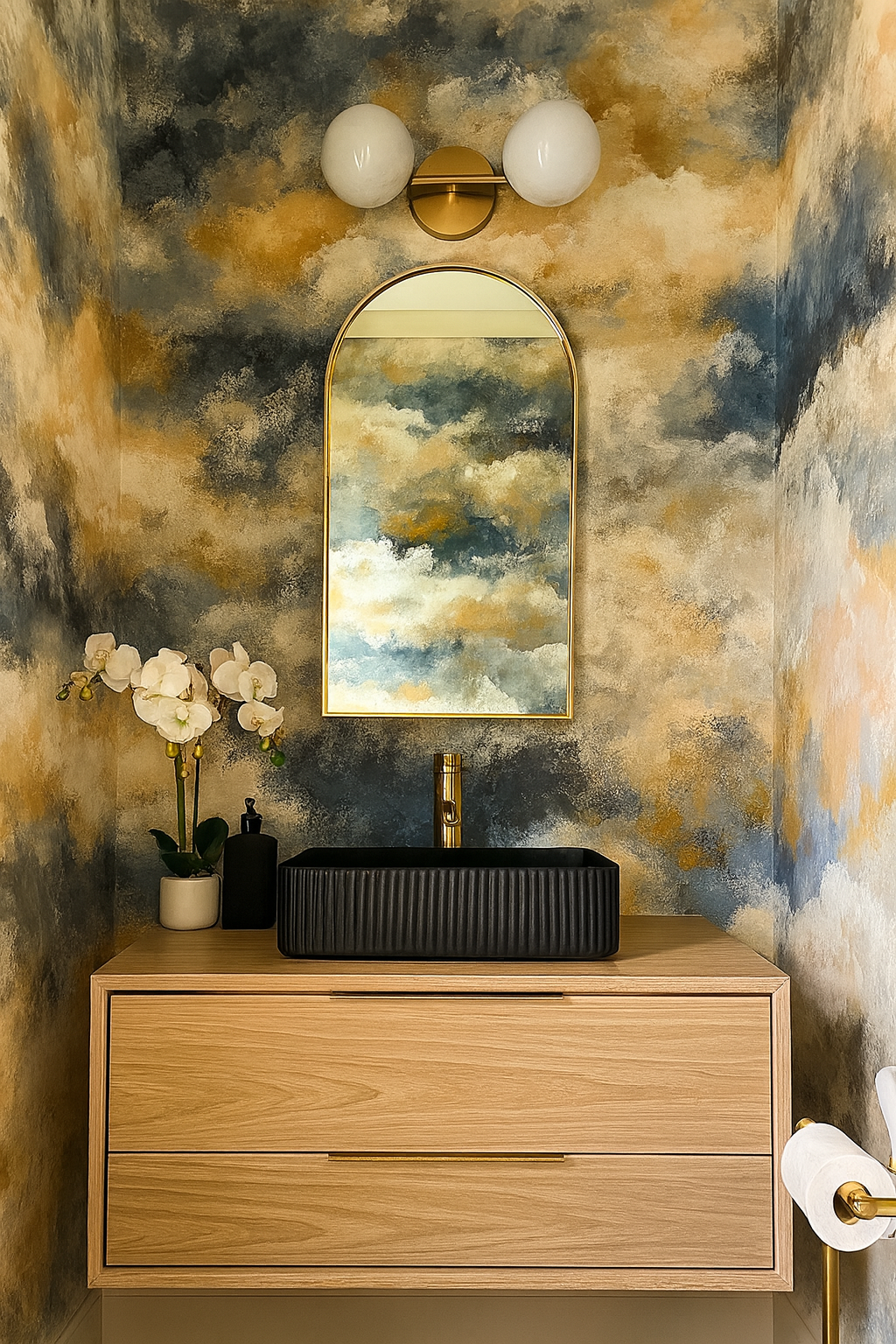 A dreamy blend of soft watercolor clouds in layers of slate blue, ochre, blush, and cream, Storm Petals brings moody serenity to your walls. The abstract brush marks feel like petals caught in a storm—or the last light of a watercolor sunset. Use it in modern bedrooms, romantic lounges, or ethereal nurseries for an instant atmosphere upgrade.