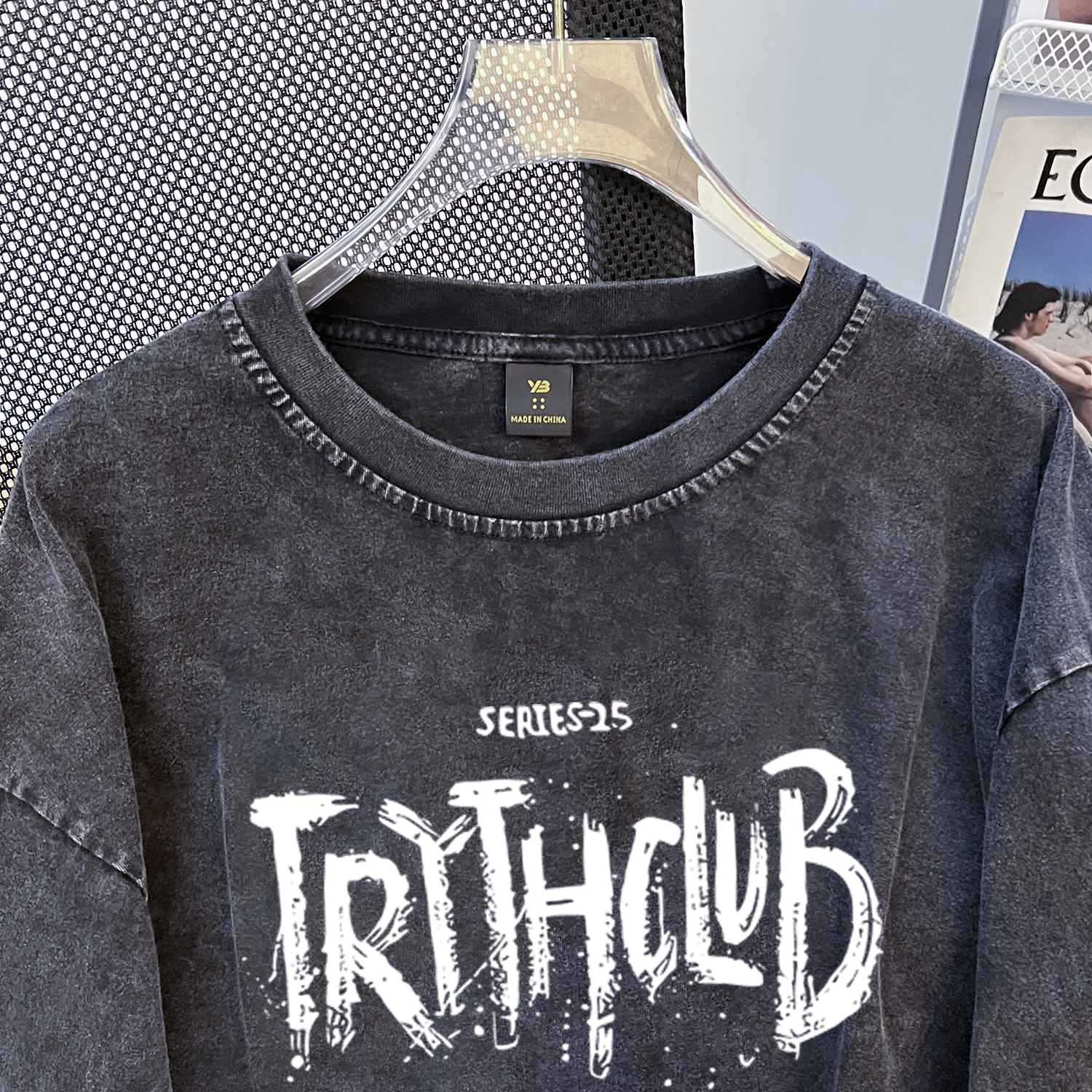Street Niche Washed out Vintage Heavy Cotton O neck Short Women Washed Distressed Long T Shirt
