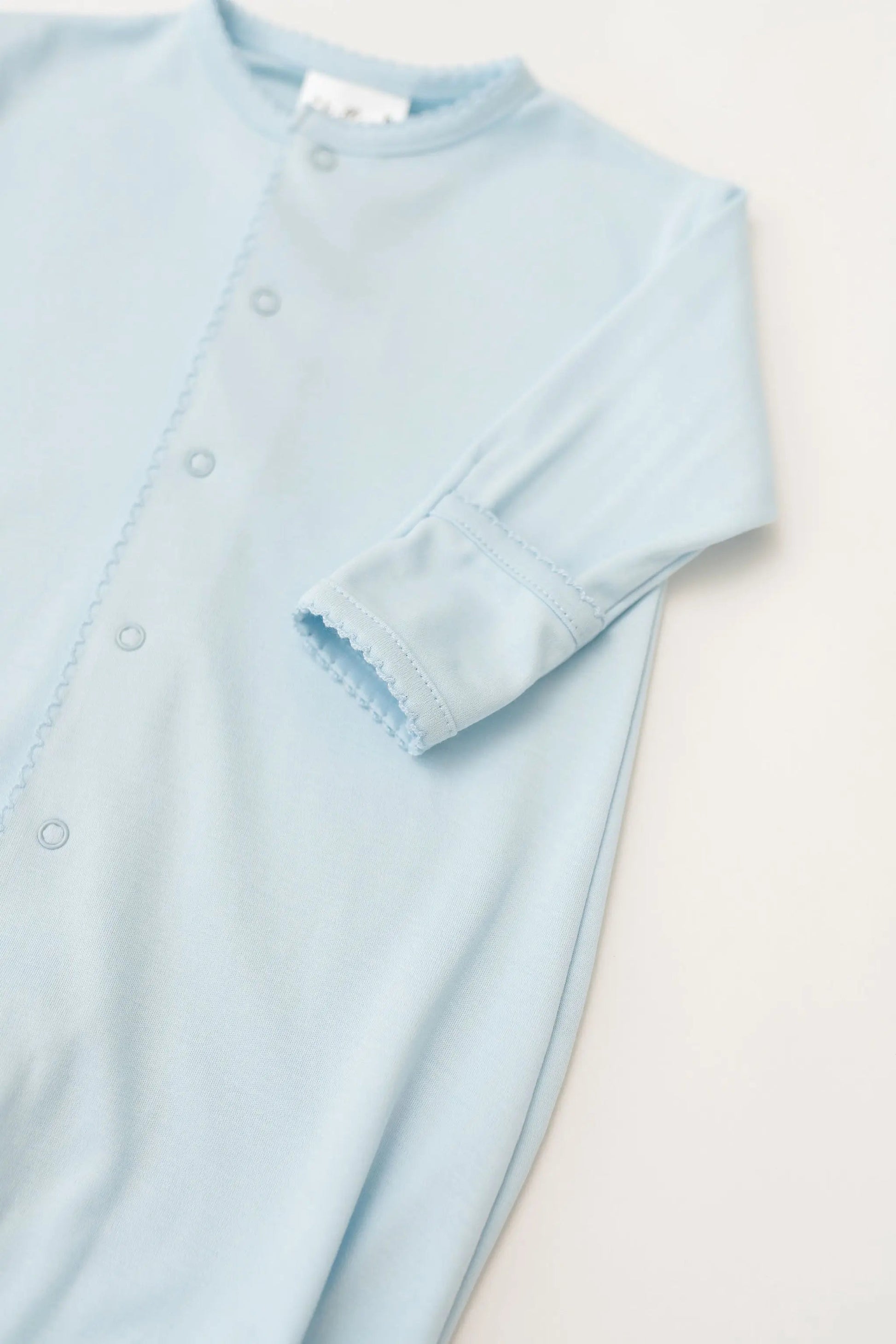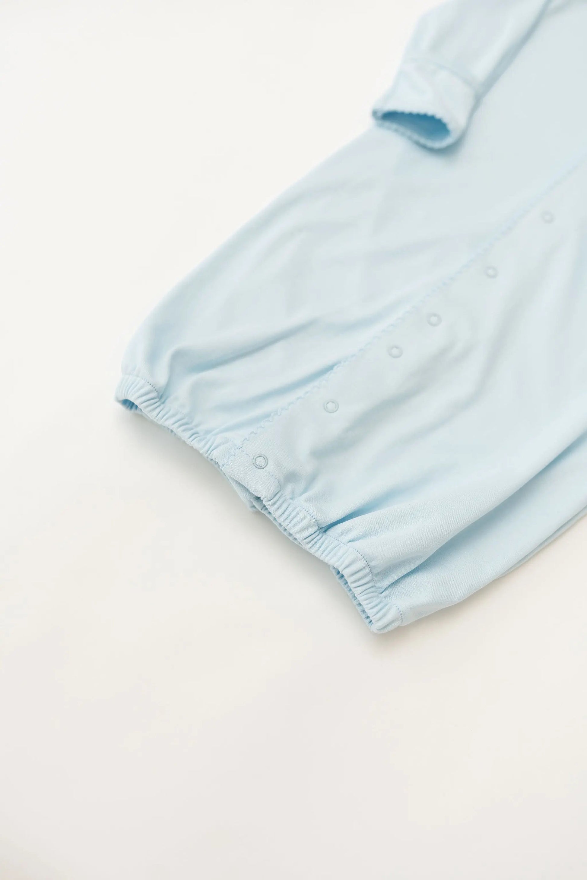Indulge in luxury and practicality with our 2-in-1 Convertible Baby Gown/Jumpsuit, designed to elevate your baby's style and comfort. Crafted from the finest premium pima cotton, this luxurious baby clothing is not only irresistibly soft and cozy but also perfect for personalization and monogramming, making it an ideal keepsake for cherished memories.