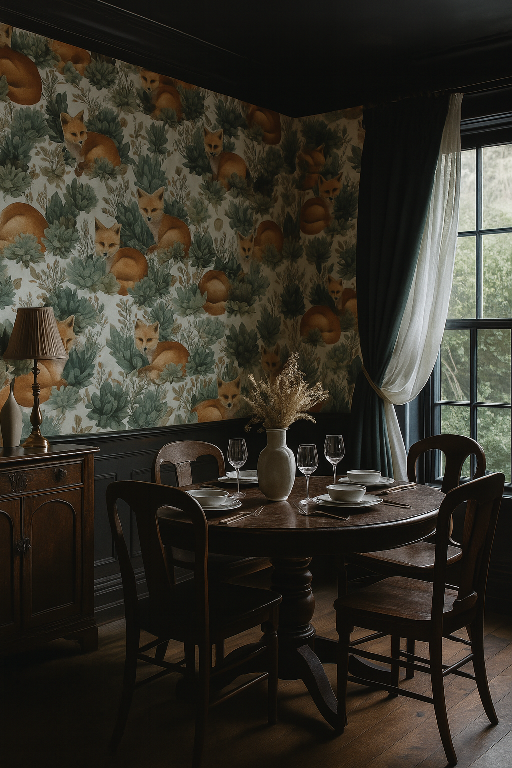 Succulent Scouts tells the tale of clever foxes tucked into a lush bed of watercolor succulents and desert botanicals. This charming pattern feels both wild and gentle, with its soft greens and warm fox fur tones. Ideal for nurseries, southwest-themed bathrooms, or nature-inspired bedrooms.