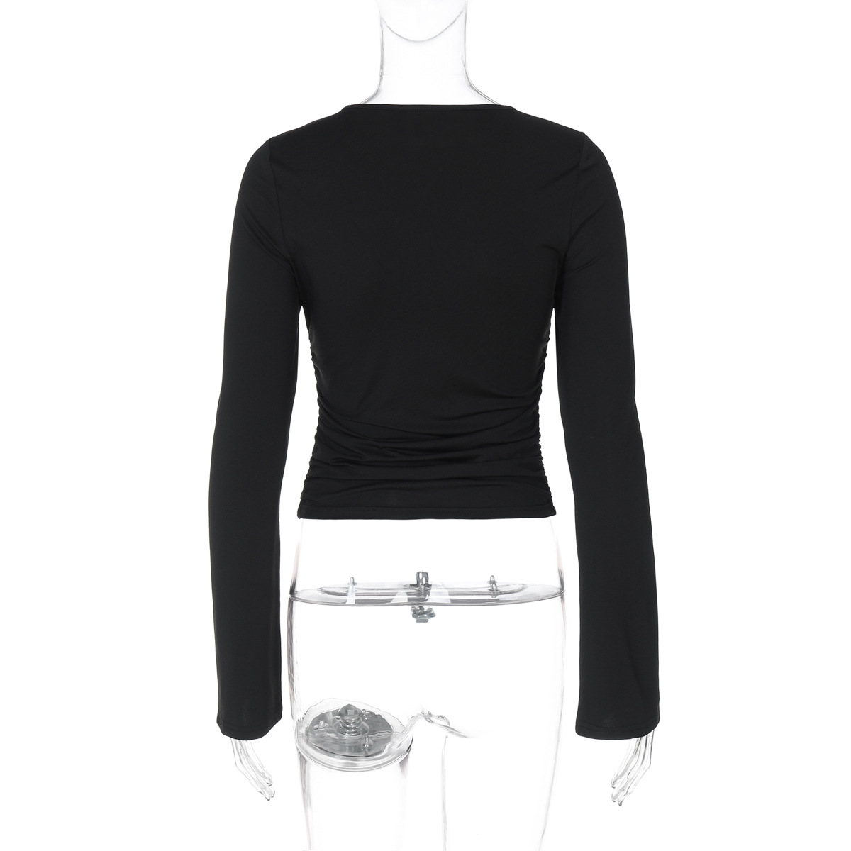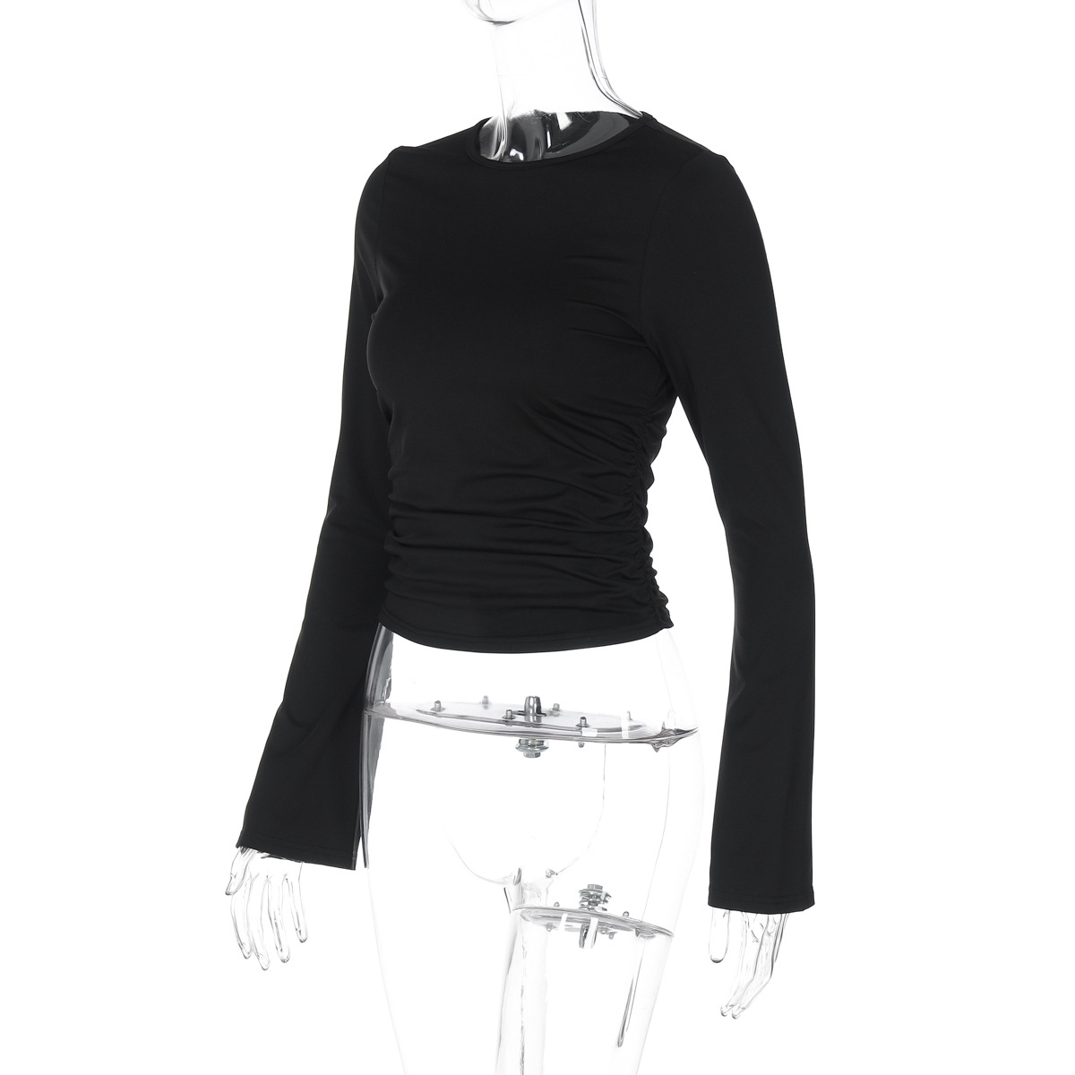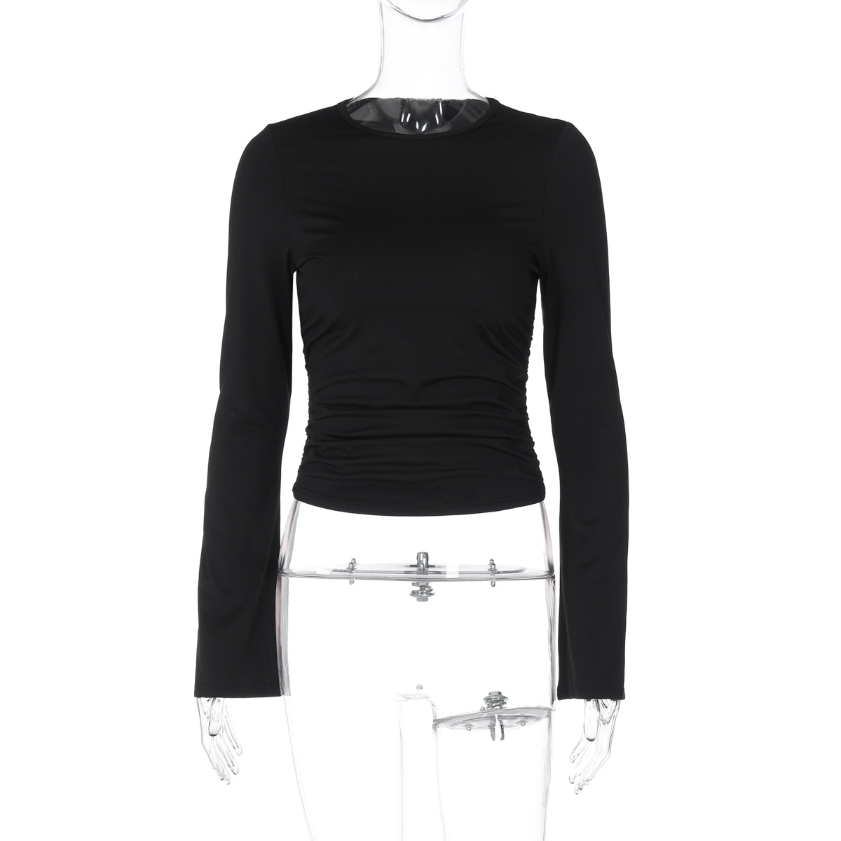 Summer Solid Color round Neck Long Sleeve Slim Fit All Match T shirt Top Women Clothing