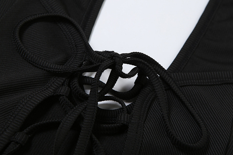 Summer Women Clothing Sexy Sexy Solid Color Lace up V neck Halter Bum Lift Shorts Jumpsuit