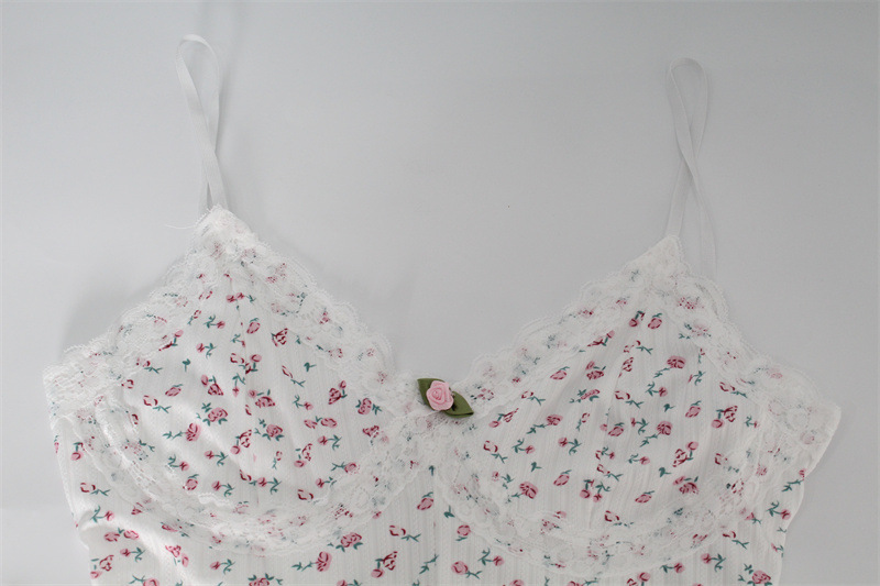 Summer Women Sexy Sexy Strap Floral V Neck Lace Edge Stitching Jumpsuit Fresh Home Casual
