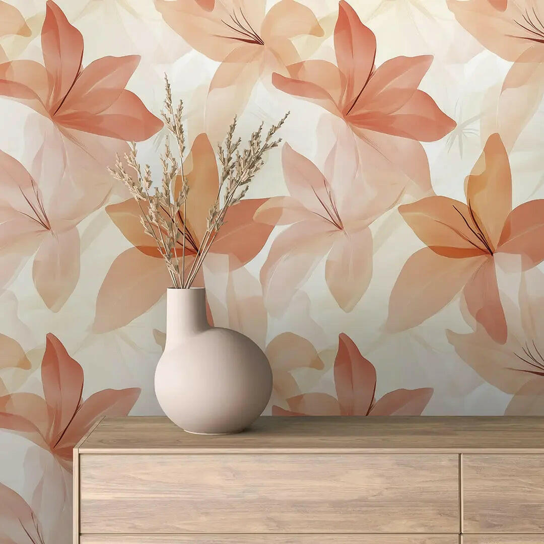 Bring gentle, golden-hour warmth to your space with Sun-Kissed Lily Haze. This elegant removable wallpaper layers soft lilies in a sunlit haze, blending warm neutrals with airy botanicals for a calm, uplifting backdrop in living rooms, bedrooms, nurseries, and creative studios.