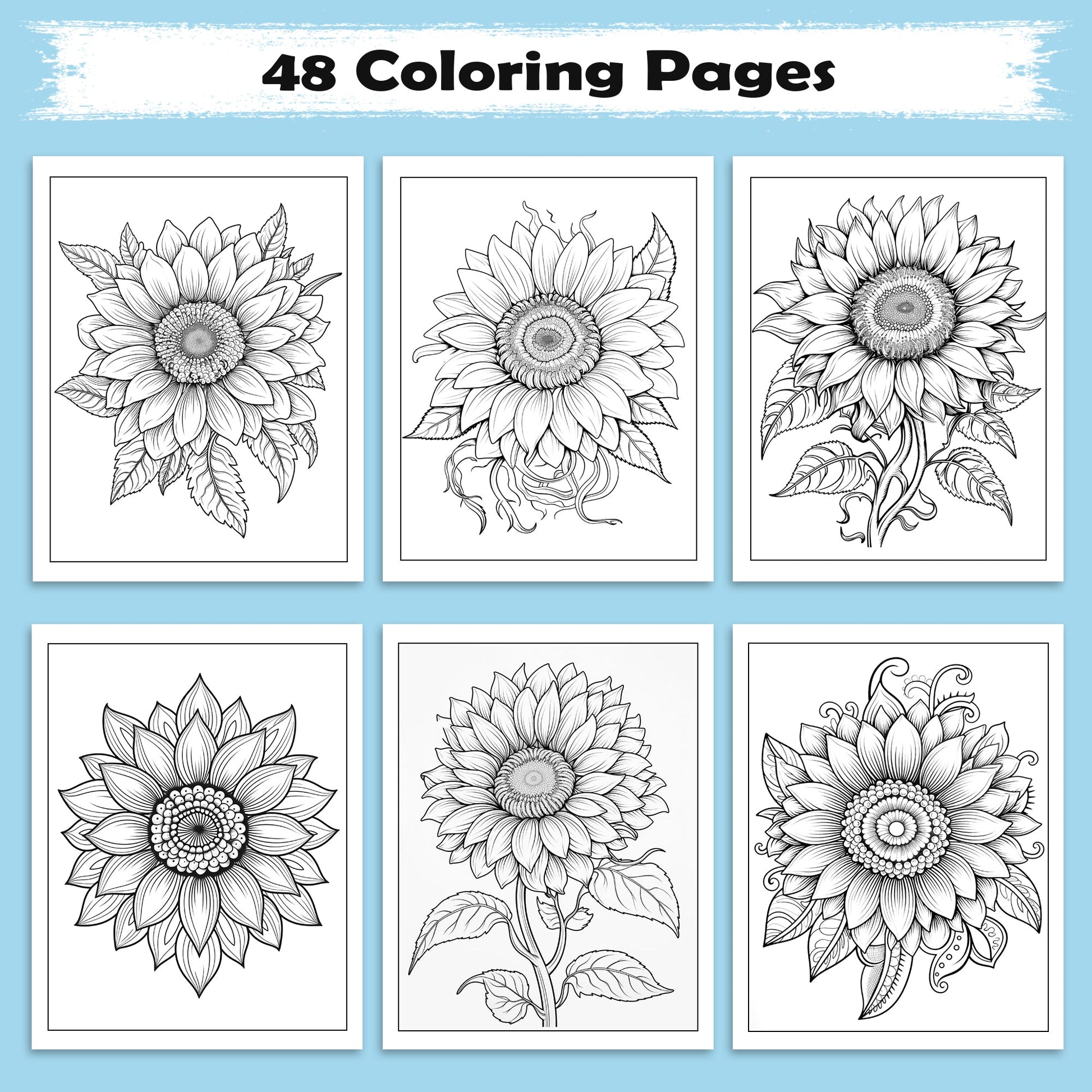 Sunflower Mandala Bliss Coloring Pages – 48 Floral Designs for Adults