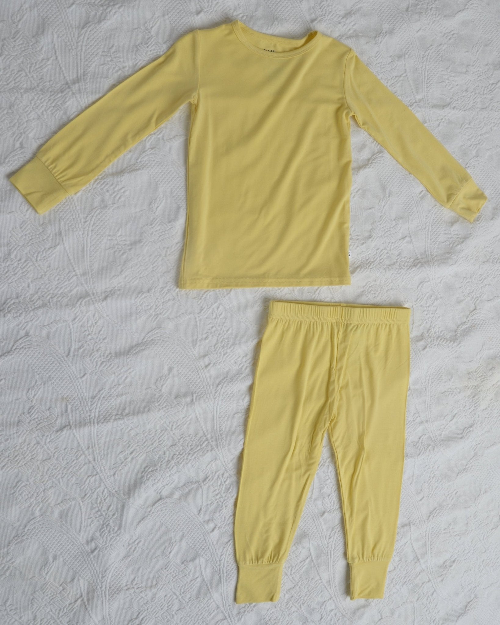 Get ready to lounge in style with our Yellow Bamboo Pajama Set. This two-piece set includes a long sleeve top and matching bottoms in a playful and adorable yellow print. Relax and unwind in this cozy yet quirky pajama set.