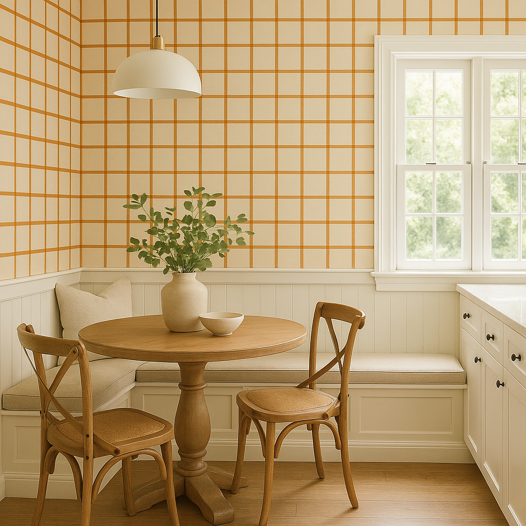 Sunstone Grids Wallpaper combines modern minimalism with subtle warmth, featuring a soft grid pattern in pale sand and sun-bleached ivory tones. This versatile wallpaper adds structure and quiet texture to home offices, entryways, or Scandinavian-inspired interiors. Ideal for customers searching for grid wallpaper, minimal modern wallpaper, neutral geometric wall coverings, or Japandi wallpaper.