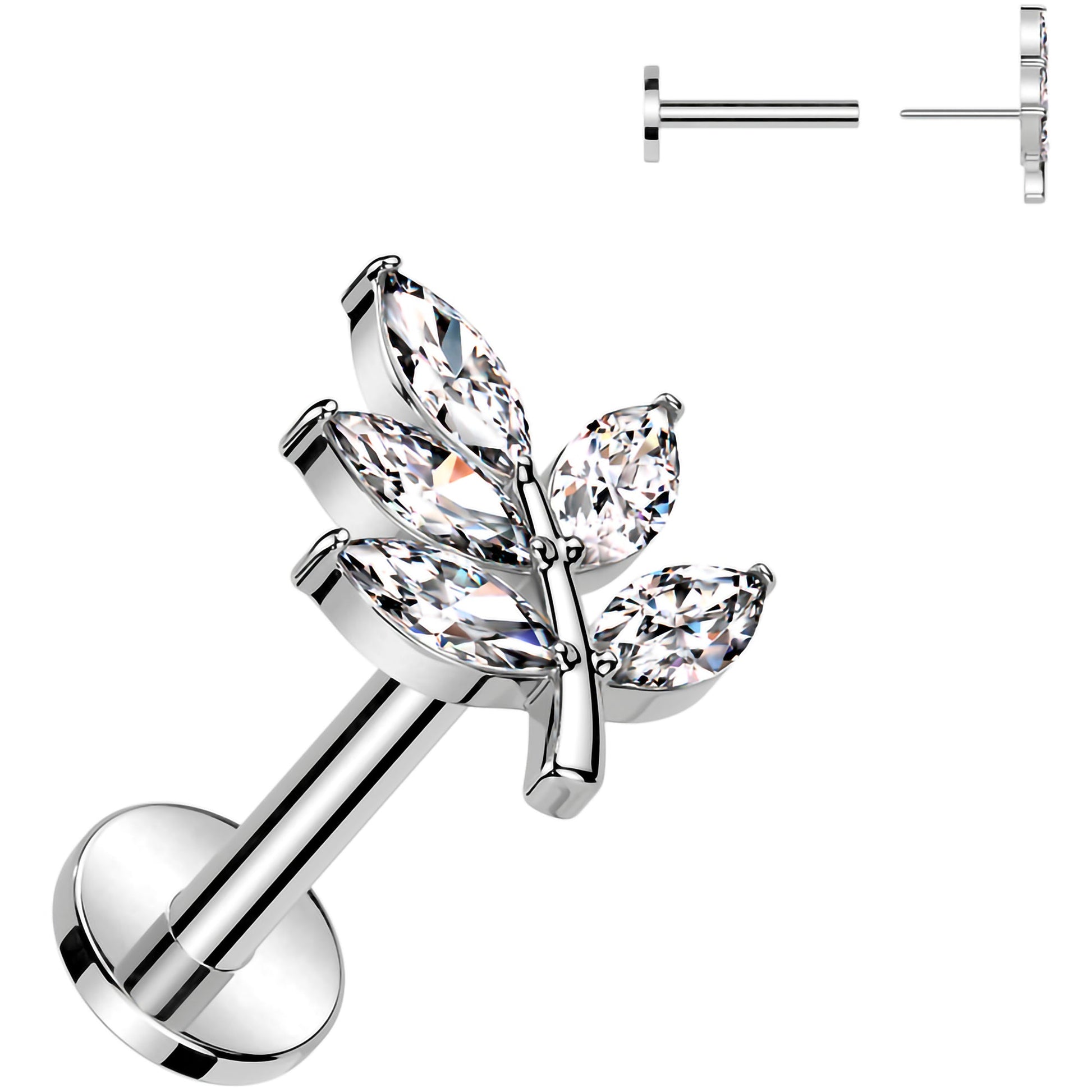 Surgical Steel Flat Back Earring - 18G With Cubic Zirconia Leaves