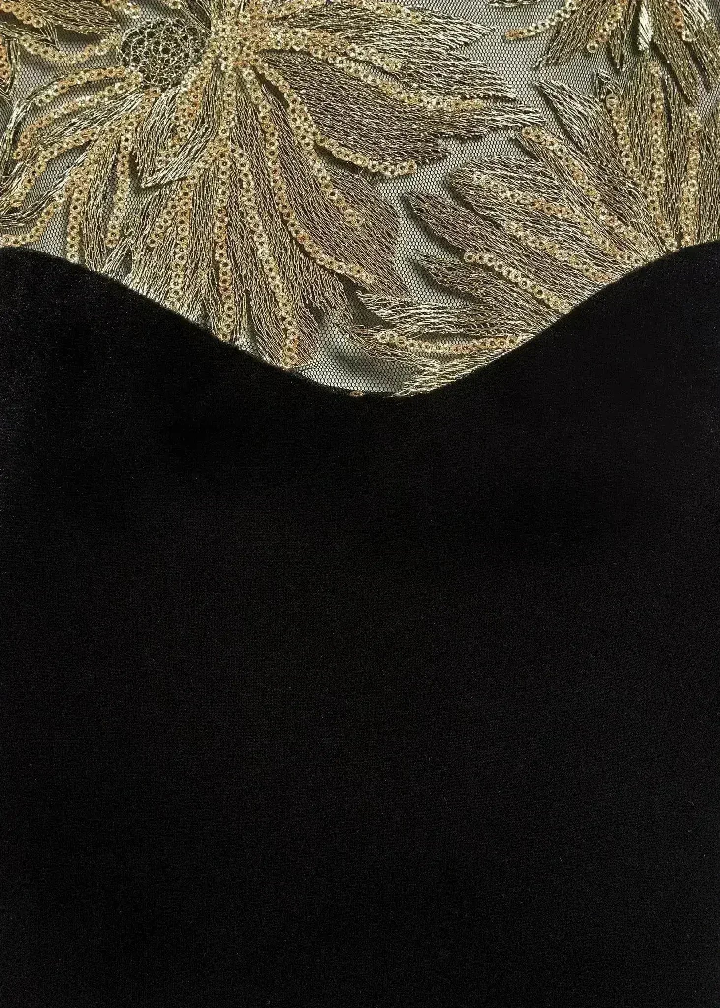 Introducing Dawn, our timeless sweetheart neckline dress, is a must-have for classic events and parties. Dawn features a bodycon fit in decadent velvet and stunning gold embellished lace. This sweetheart neckline midi dress is undeniably alluring and is undoubtedly a wardrobe staple for any glam night.