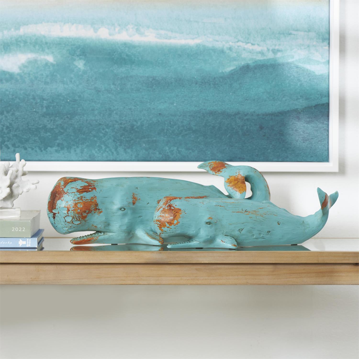 Add a touch of coastal charm to your space with this beautifully distressed teal whale sculptures. Featuring a mother and baby whale, this polystone-crafted sculptures showcase a textured, weathered finish with brown wood-inspired accents for an authentic, aged look.