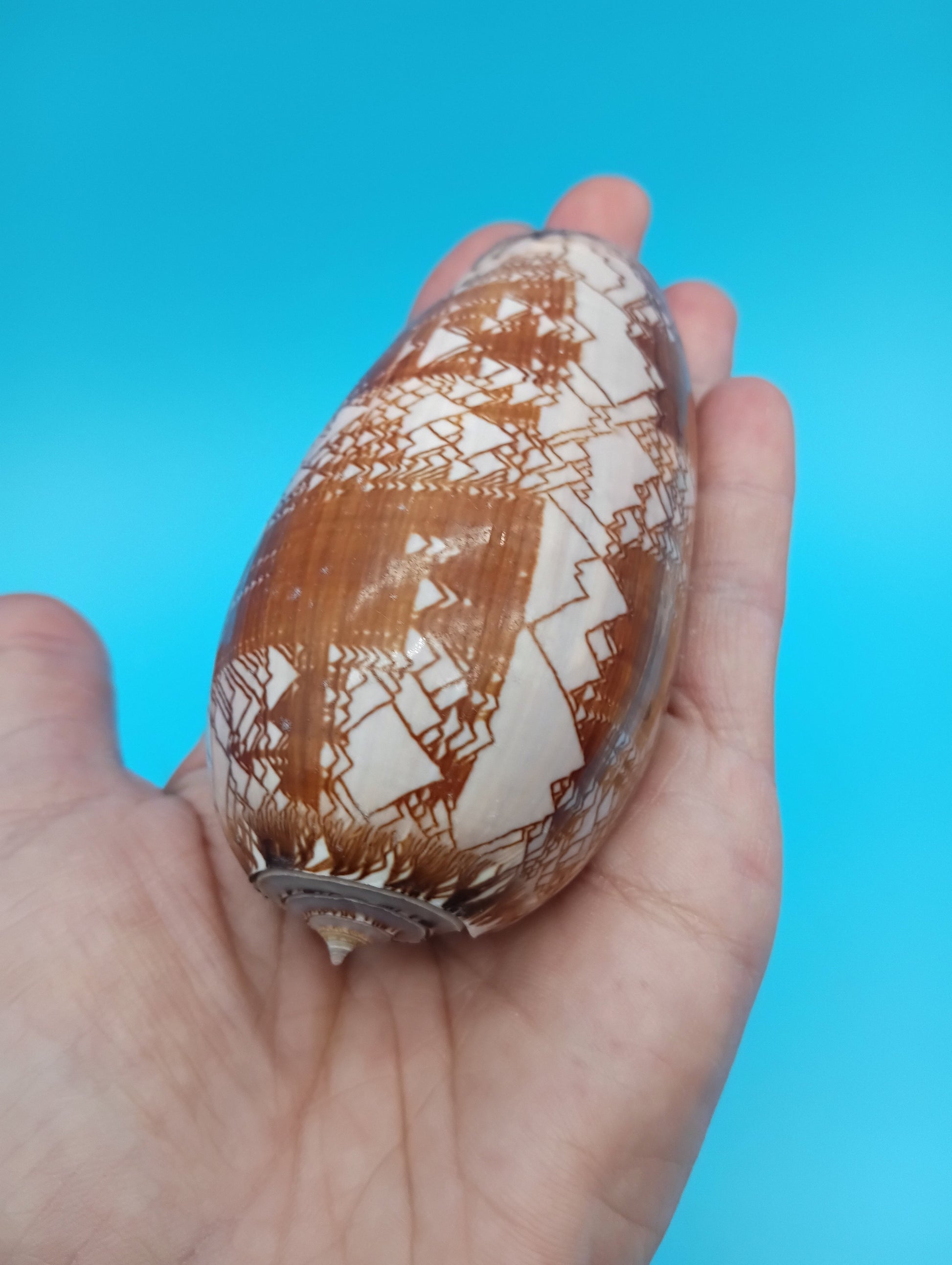 - Genuine Oliva porphyria shell, known for its polished, glossy finish