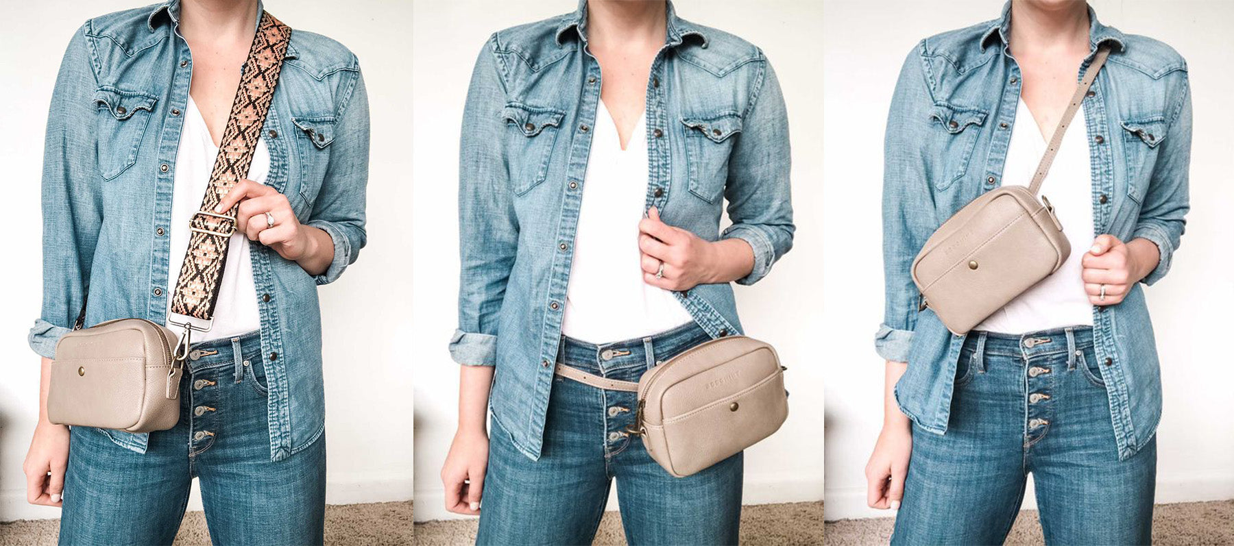 Finally, your perfect everyday bag is here! The Bowie Pack can be worn as a crossbody bag, fanny pack, or across the chest with its included adjustable strap. Just the right size for your daily needs, the Bowie has a built-in wallet compartment, two additional internal pockets, and one external pocket with snap closure. Take off the strap and throw it in a bigger bag for days when you need to pack more. Or customize it with one of our new bag straps!