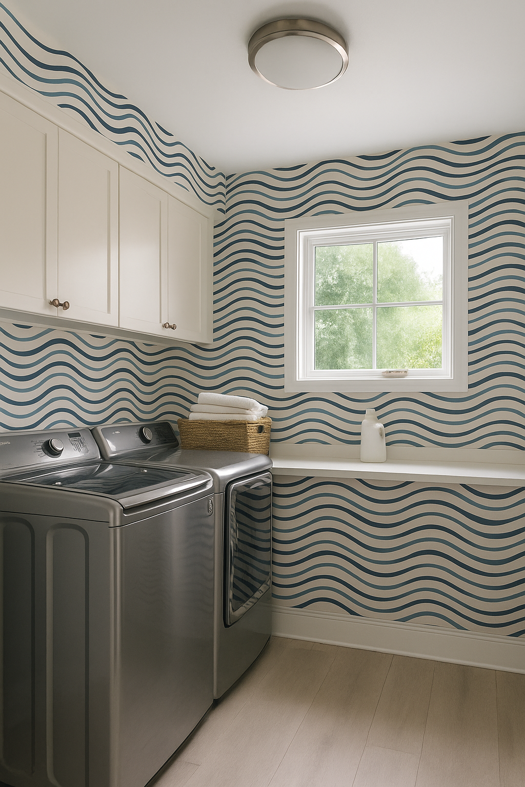 Tidal Lines Wallpaper evokes the soothing flow of water with abstract, wave-inspired lines in soft sand, taupe, and charcoal over an ivory background. This organic, calming design is perfect for coastal, Japandi, or modern organic interiors, bringing gentle movement and texture to walls. Ideal for those searching for wave wallpaper, modern coastal wallpaper, organic abstract wall coverings, or soothing nature-inspired wallpaper.