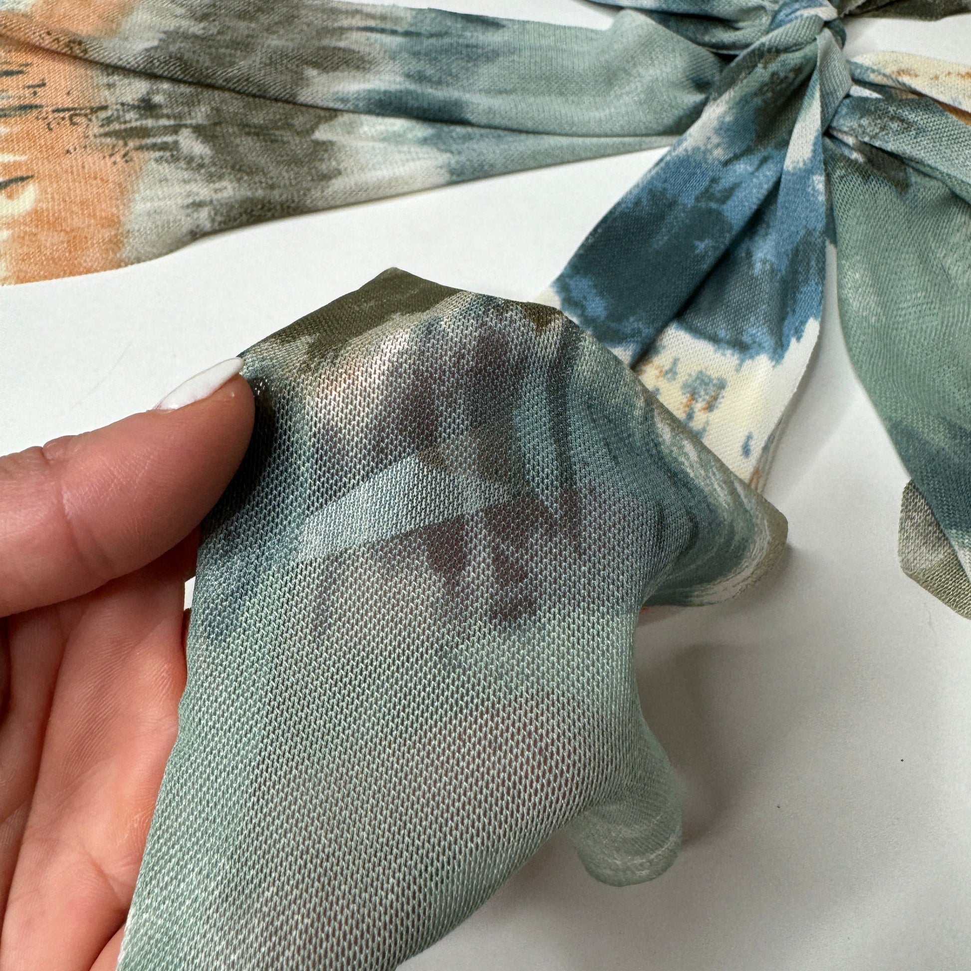 Elevate your style with the versatile Light & Airy Tie Headband. Crafted from a silky soft power mesh fabric, this scarf combines 92% Polyester and 8% Spandex for the ultimate in comfort and flexibility. Measuring approximately 62 inches in length and 5 inches in width, this accessory offers endless styling possibilities.