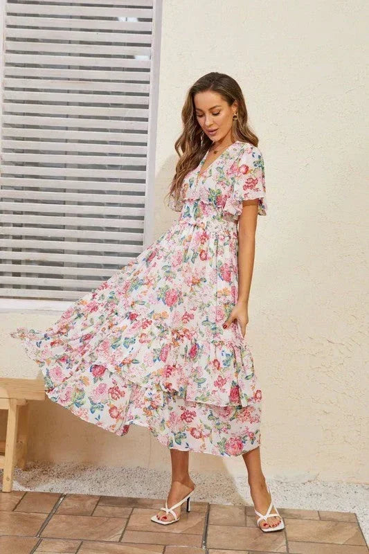 Tiered floral midi dress
