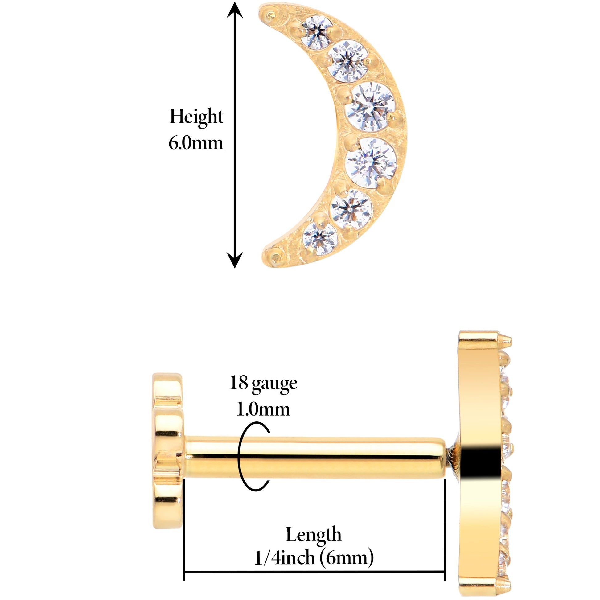 Titanium Flat Back Earring Gem Crescent Moon - 18G Threadless Reversible