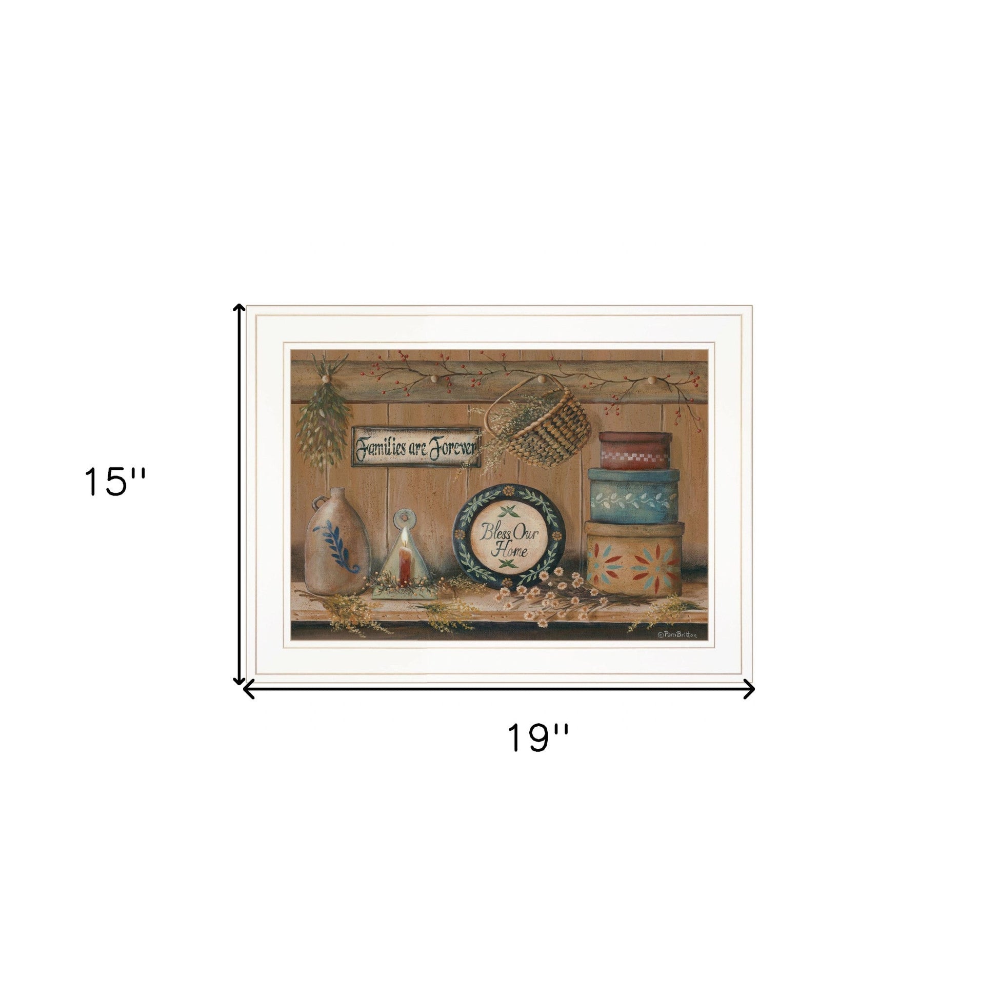 This treasures on the shelf ii 2 white framed print wall art will add a beautiful decorative accent to your decor. This print is a visual artistic expression that allows you to decorate your space in style. Reproduced for you on paper, this hanging decorative accent will be a trendy and fashionable way to dress your walls. Hang on your wall to add some up to date fashion and decoration. Instantly liven up your space with this art that brings color and dimension to your walls. 15-inch H x 19-inch W x 1-inch D