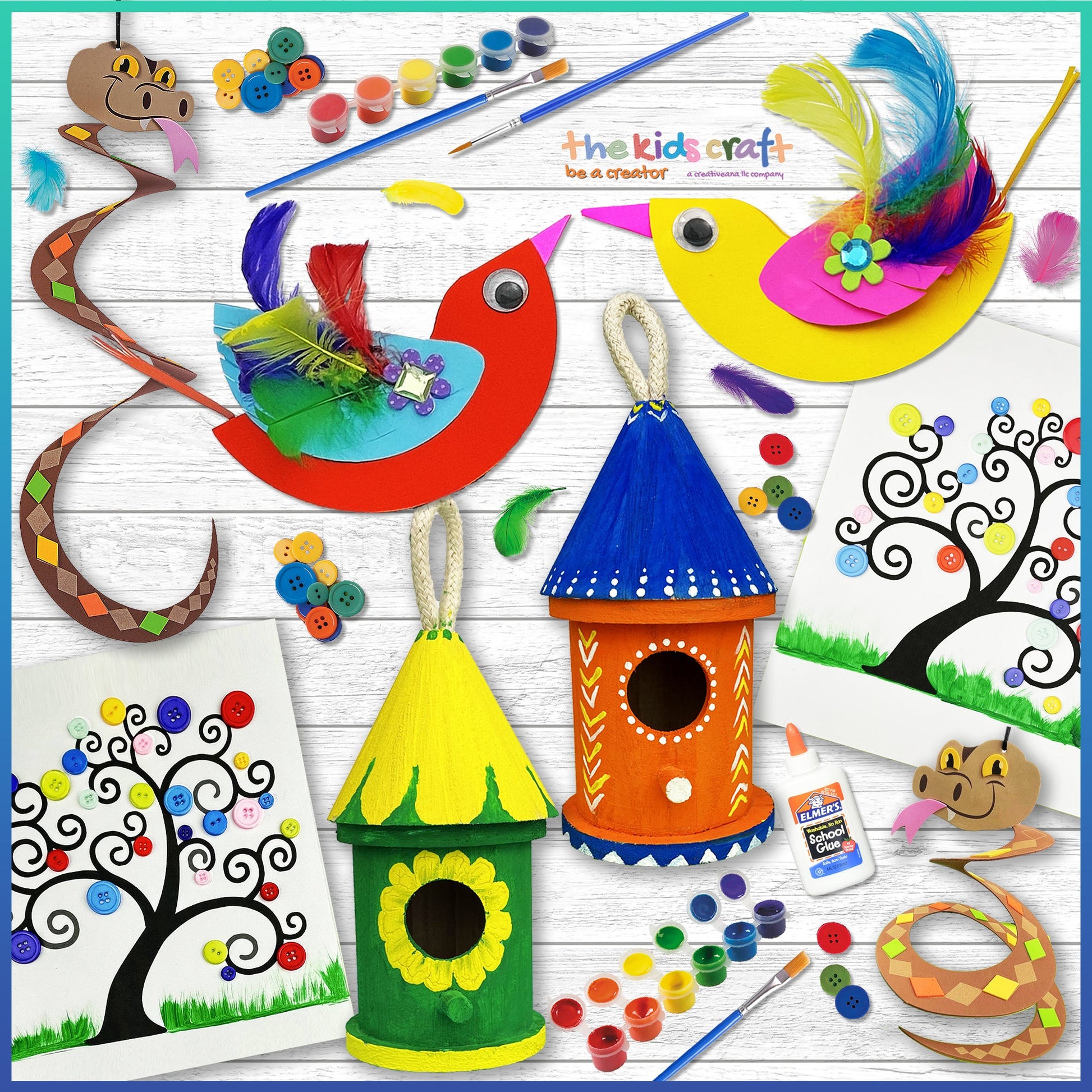 With this craft box, crafters will make and meet two beautiful Rocking twin birds Mia and Nia, and a very charming swirly snake Sammy. These colorful crafts are so eye-catching and fun to make that crafter surely will have fun creating all the characters using different techniques and will love their masterpiece once done. They will also have an absolute blast bringing their birdhouses to life with bright and fun paint and patterns. And, that’s not it - they will get more crafty and enjoy creating their unique and colorful tree artwork using buttons. As an added fun and learning opportunity for our younger audience – this craft serves as a fantastic lesson about sorting by shape, size, and color.