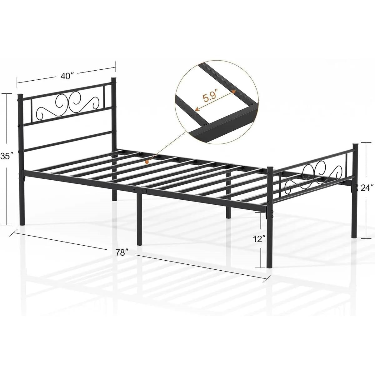 - Twin Sturdy Metal Platform Bed Frame with Headboard Footboard in Black Finish