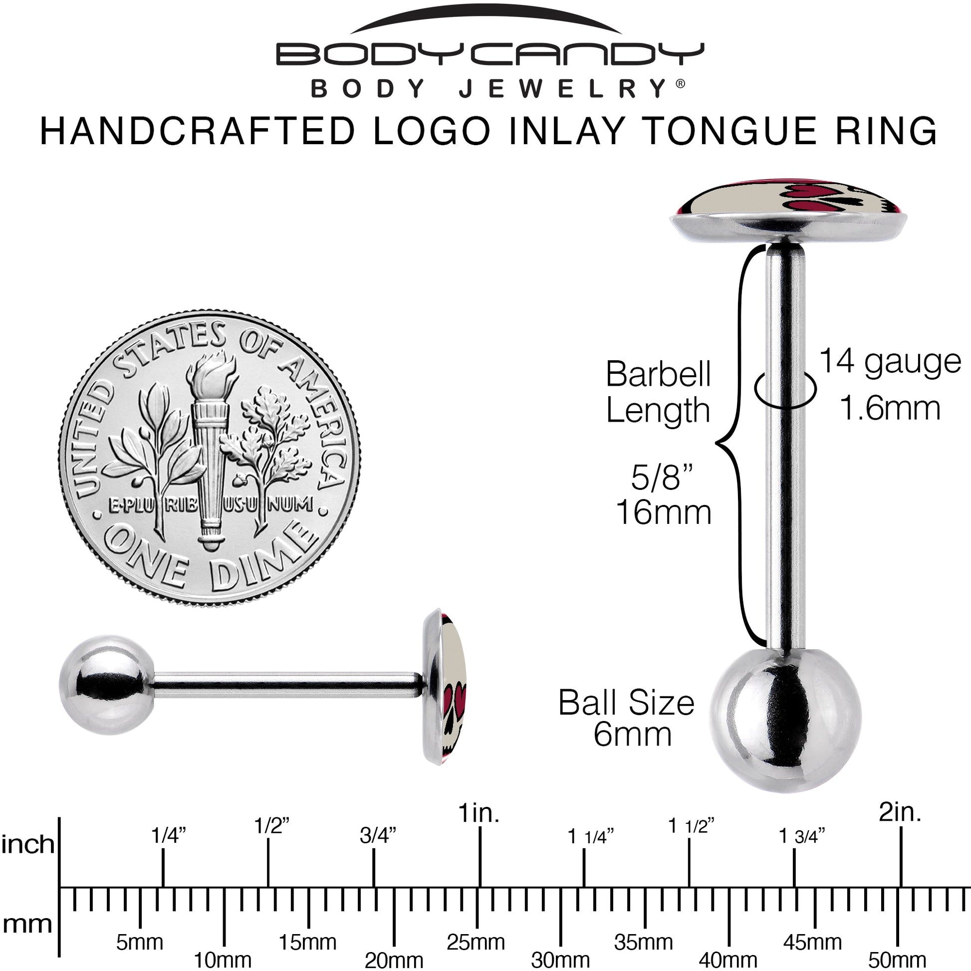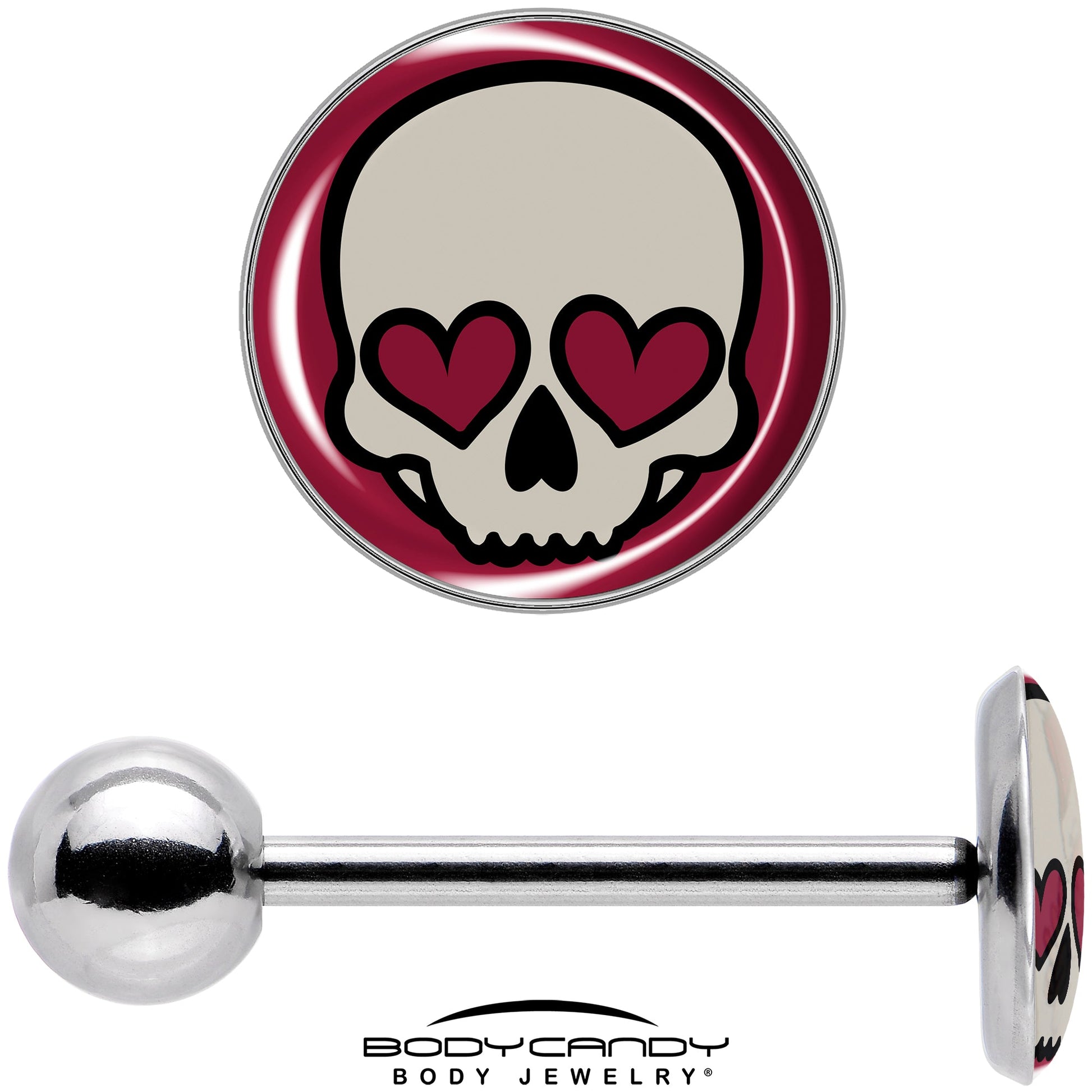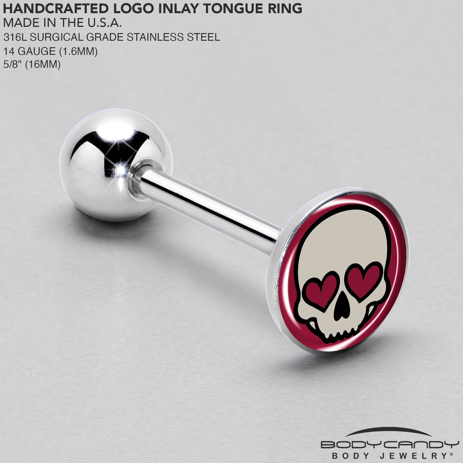 The artist-drawn logo insert features a unique blend of sweet heart eyes and edgy skull design, making it the ultimate accessory for expressing your bold personality. Whether you're looking to treat yourself or surprise someone special, this tongue ring is a perfect gift for Valentine’s Day or any occasion.