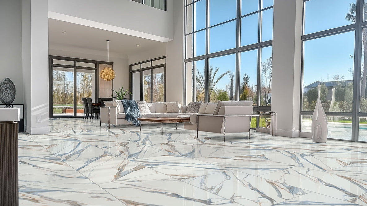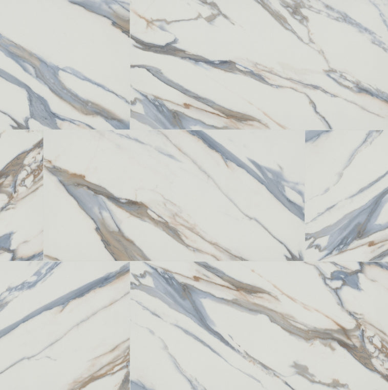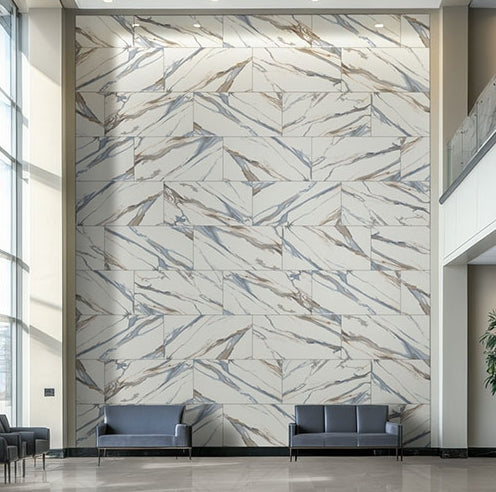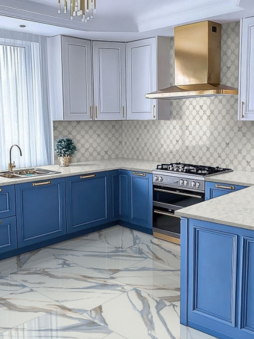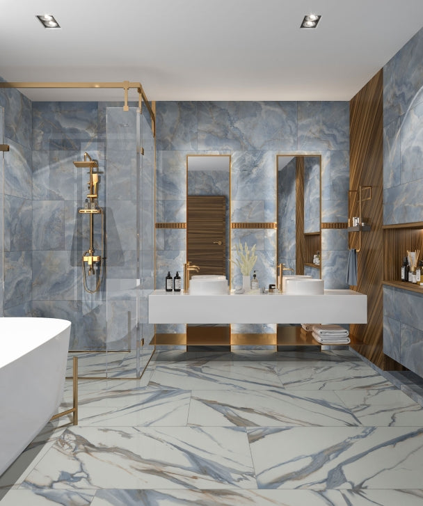 Make a statement with Valesia Azula, a breathtaking 24” x 48” large-format tile that exudes elegance. This polished white marble is graced with striking blue veins, delicately kissed by hints of gold for a warm, luminous effect. The grand scale enhances any space, creating a seamless, high-end look perfect for kitchen backsplashes, bathroom accent walls, and beyond. Timeless yet bold, Valesia Azula transforms interiors with a touch of sophistication and modern artistry.