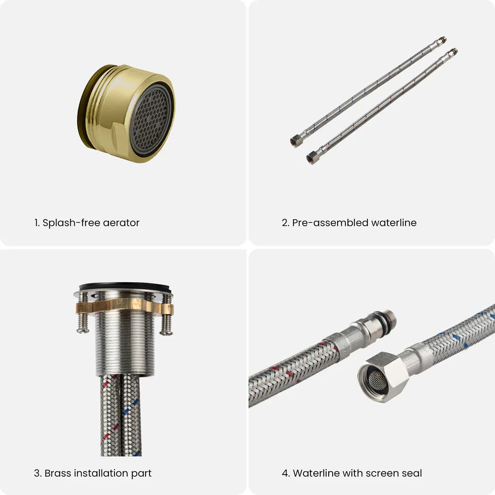 - Swiss Neoperl® Aerator: High-quality aerator delivers smooth, splash-free water flow while conserving water for an eco-friendly experience.