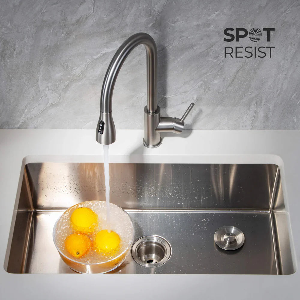 Engineered for strength, style, and function, this faucet delivers a premium stainless-steel design with a magnetic docking system, 360° swivel spout, and dual spray functions — all at an unbeatable value.