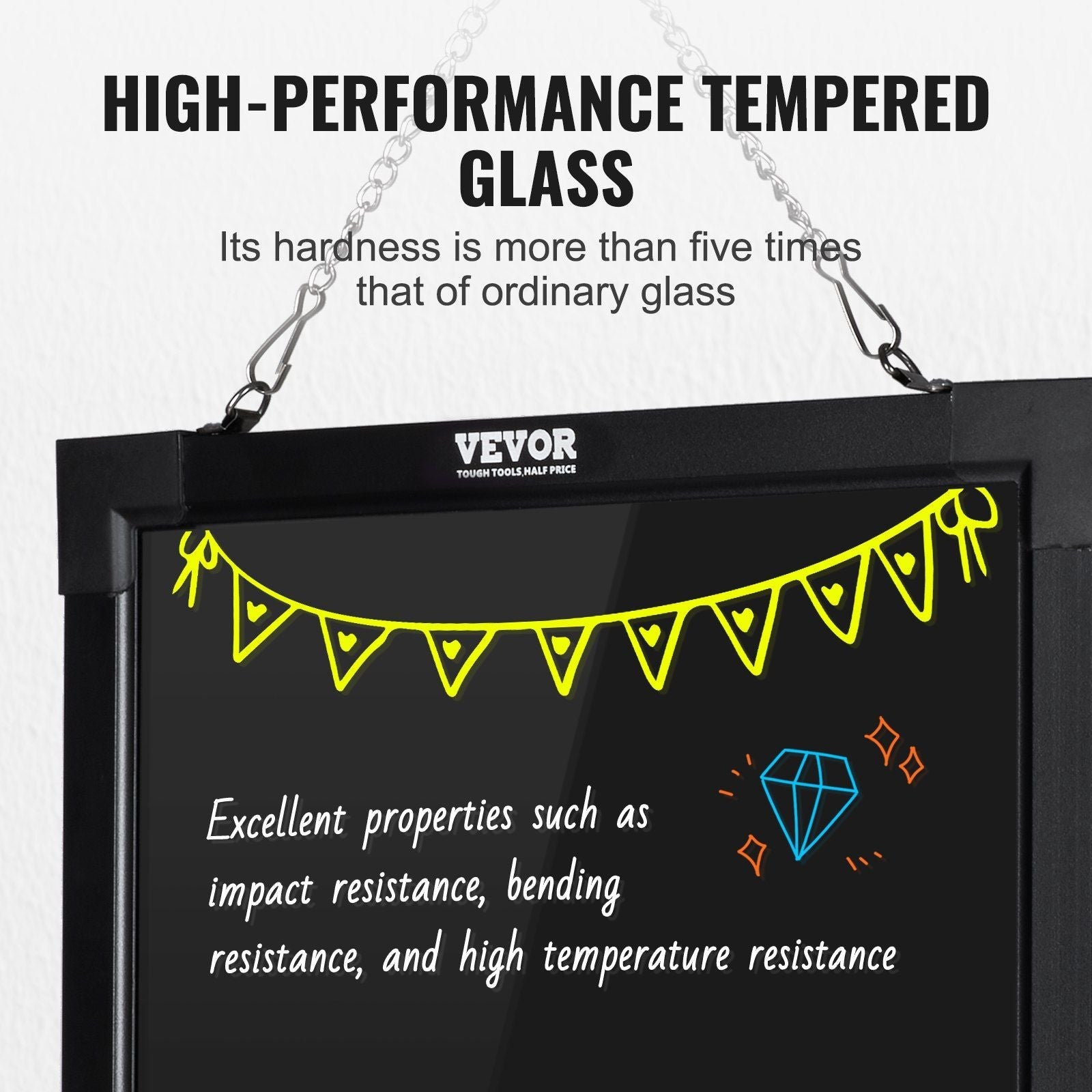 High-performance Tempered Glass: Tempered glass is a strengthened glass that is more than five times harder than ordinary glass. Fluorescent writing board also possesses excellent properties such as impact resistance, bending resistance, and high temperature resistance. Compared to previously used acrylic boards, tempered glass provides superior effects.