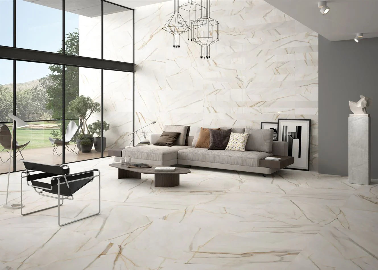 - 24" x 48" High Polished Porcelain - Viena Gold ( 12 Different Faces ) Packaging: 15.43 Sq/Ft = 2 Pieces/Box Pallet =30 Box = 462.9 Sq/Ft