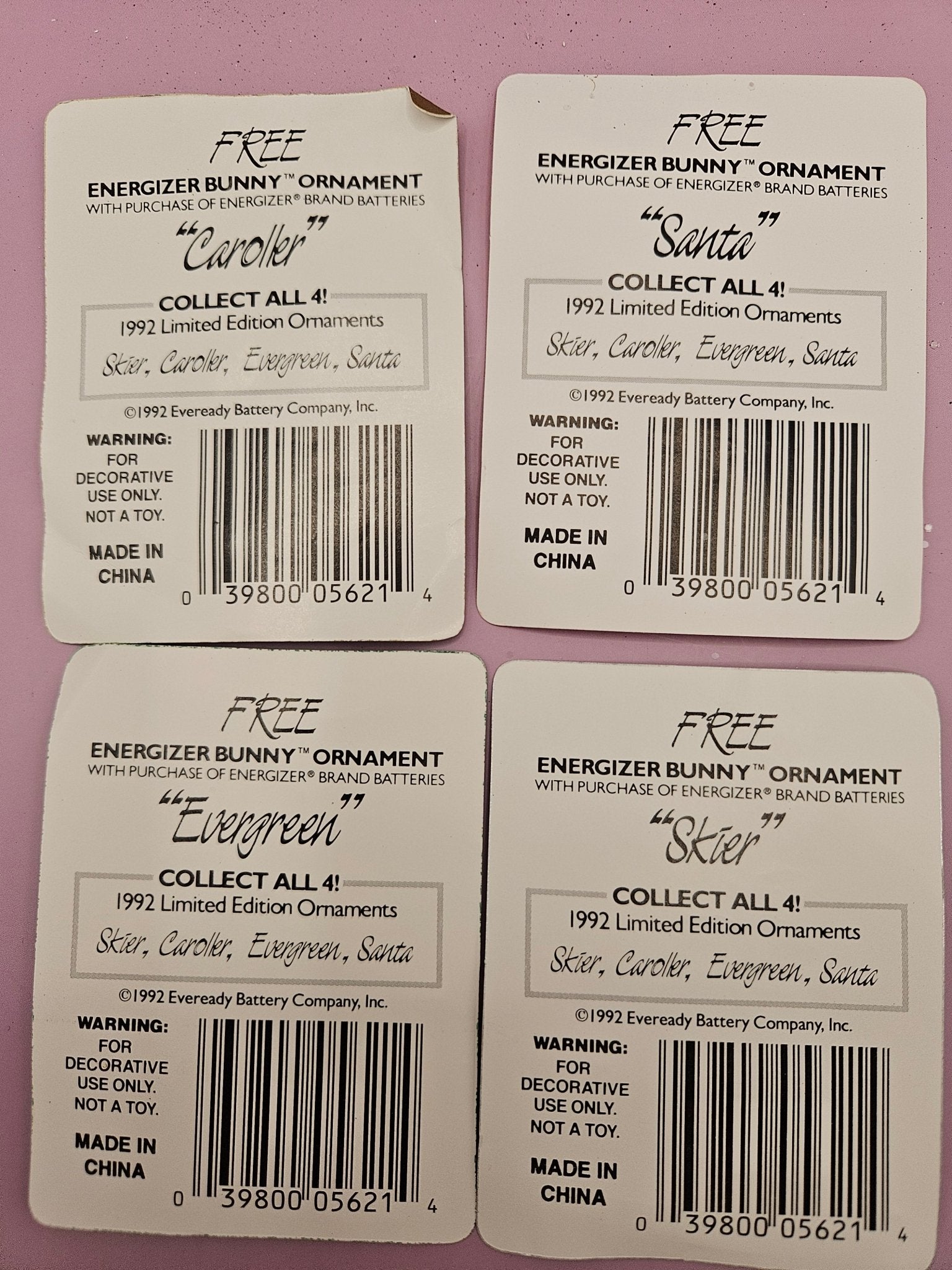 Vintage 1992 Limited Edition Energizer Bunny Ornament (4 Styles Available)