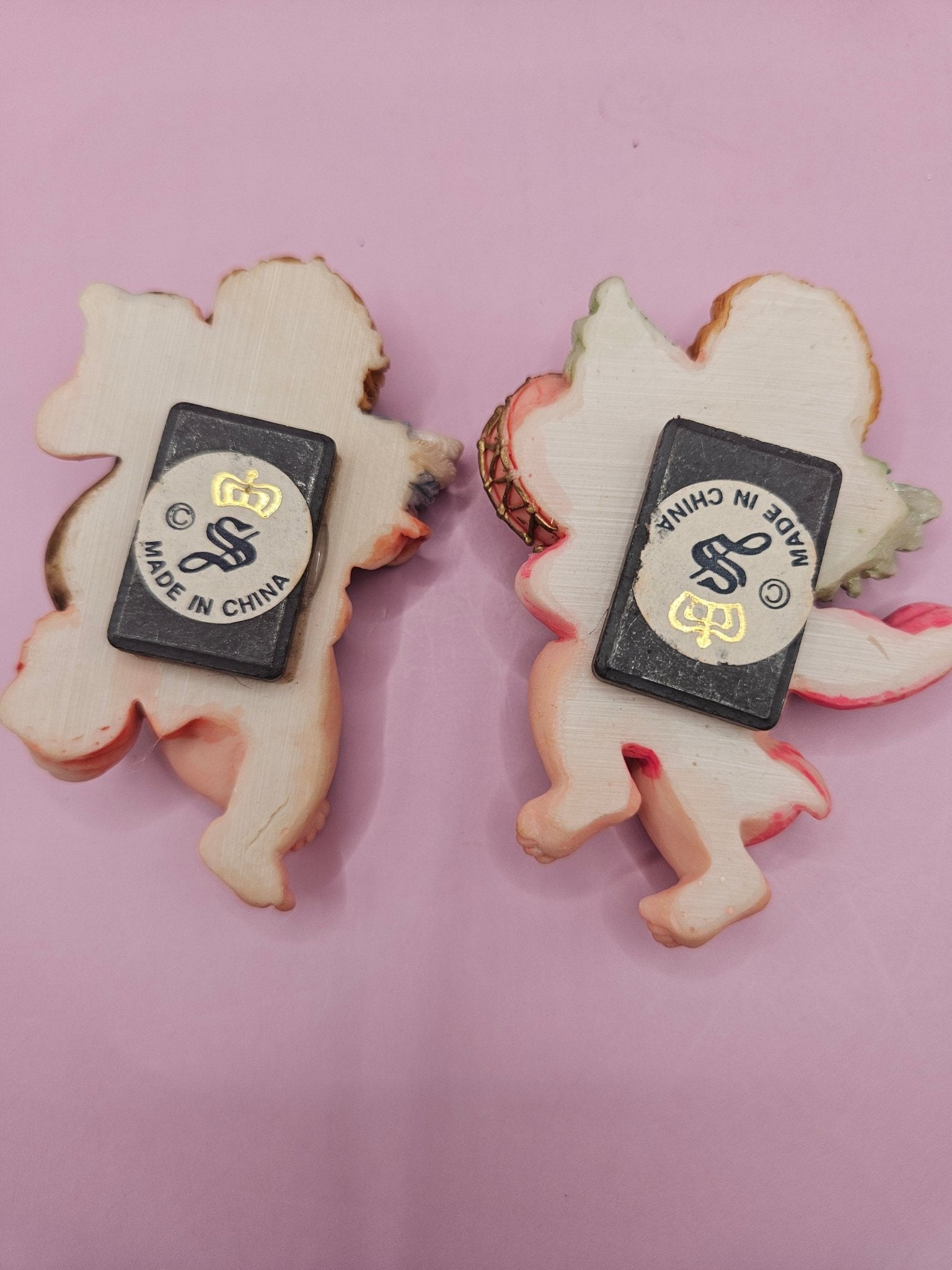 Enhance your space with these adorable vintage angel cherub magnets. Each cherub is beautifully hand-painted, featuring intricate details and soft pastel colors, playing various musical instruments. These magnets, available in 6 unique styles, are perfect for vintage décor lovers, collectors, or as charming gifts. Ideal for your fridge, magnetic boards, or holiday displays.